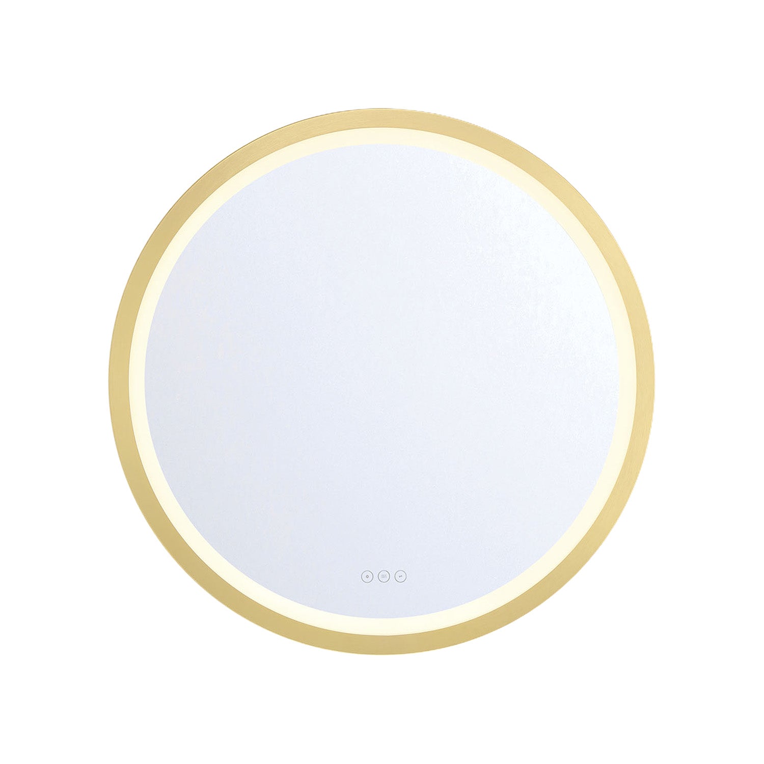 The Norma Medium LED Round Mirror makes a refined statement with its sleek silhouette and brilliant, integrated lighting. Its clean, minimalist design features a thick, elegant circular frame that radiates a seamless line of light, creating a soft, sophisticated glow. The mirror offers advanced functionality with a touch-sensor switch for dimming and three adjustable color temperatures (3000K, 4500K, 6500K), and a built-in defogger for a crystal-clear reflection. ADA compliant and ETL damp-rated, this mirror is a perfect and elegant addition to a bathroom or powder room. The beautiful Brushed Brass finish provides a warm, metallic glow that enhances the mirror's minimalist style, bringing a touch of timeless sophistication to your home.