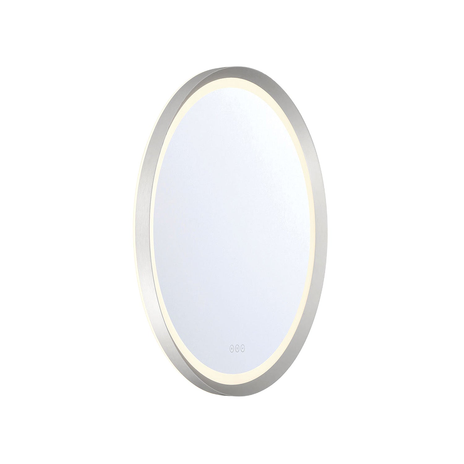 The Norma Medium LED Round Mirror makes a refined statement with its sleek silhouette and brilliant, integrated lighting. Its clean, minimalist design features a thick, elegant circular frame that radiates a seamless line of light, creating a soft, sophisticated glow. The mirror offers advanced functionality with a touch-sensor switch for dimming and three adjustable color temperatures (3000K, 4500K, 6500K), and a built-in defogger for a crystal-clear reflection. ADA compliant and ETL damp-rated, this mirror is a perfect and elegant addition to a bathroom or powder room. The beautiful Brushed Nickel finish provides a cool, refined tone that enhances the mirror's minimalist style, bringing a touch of timeless sophistication to your home.
