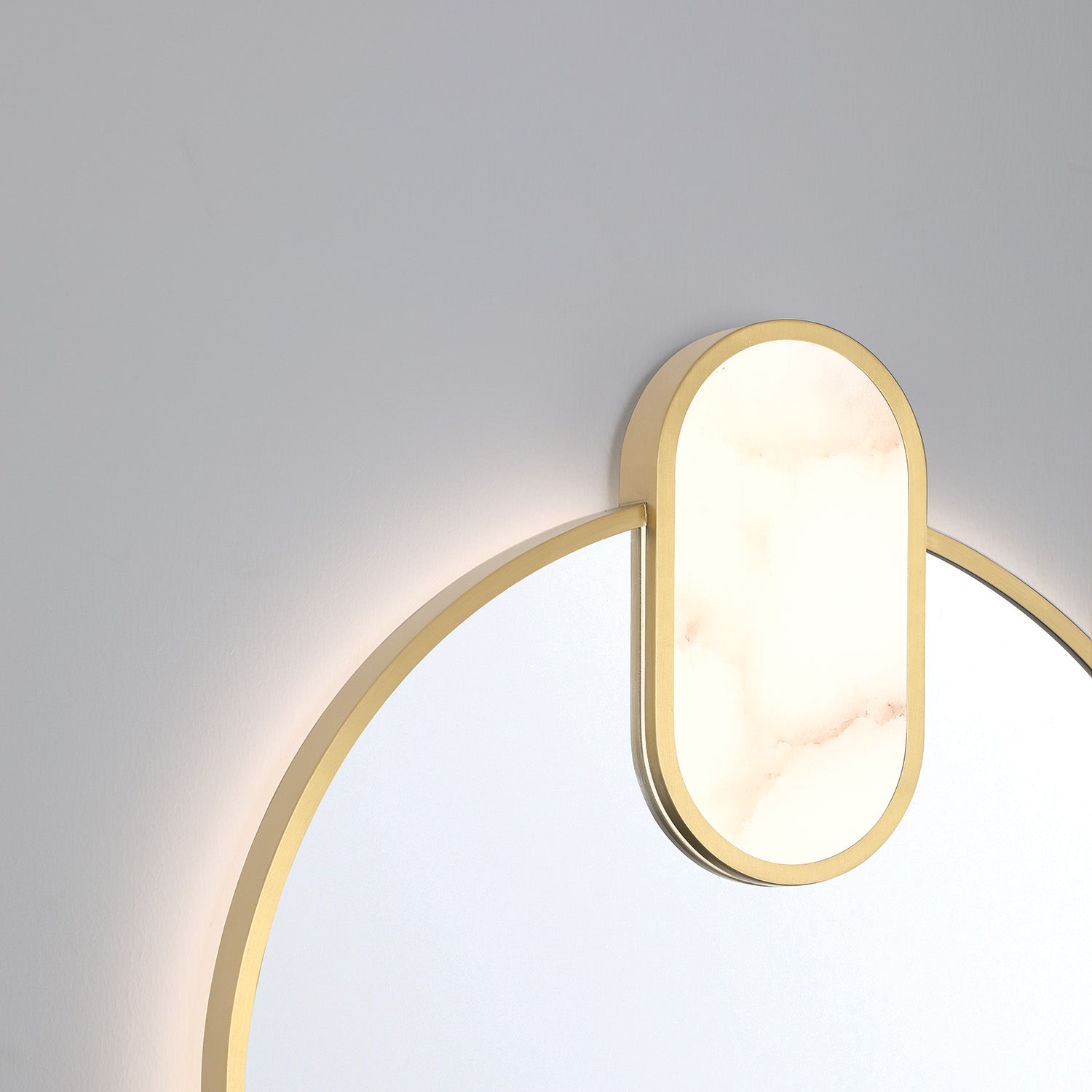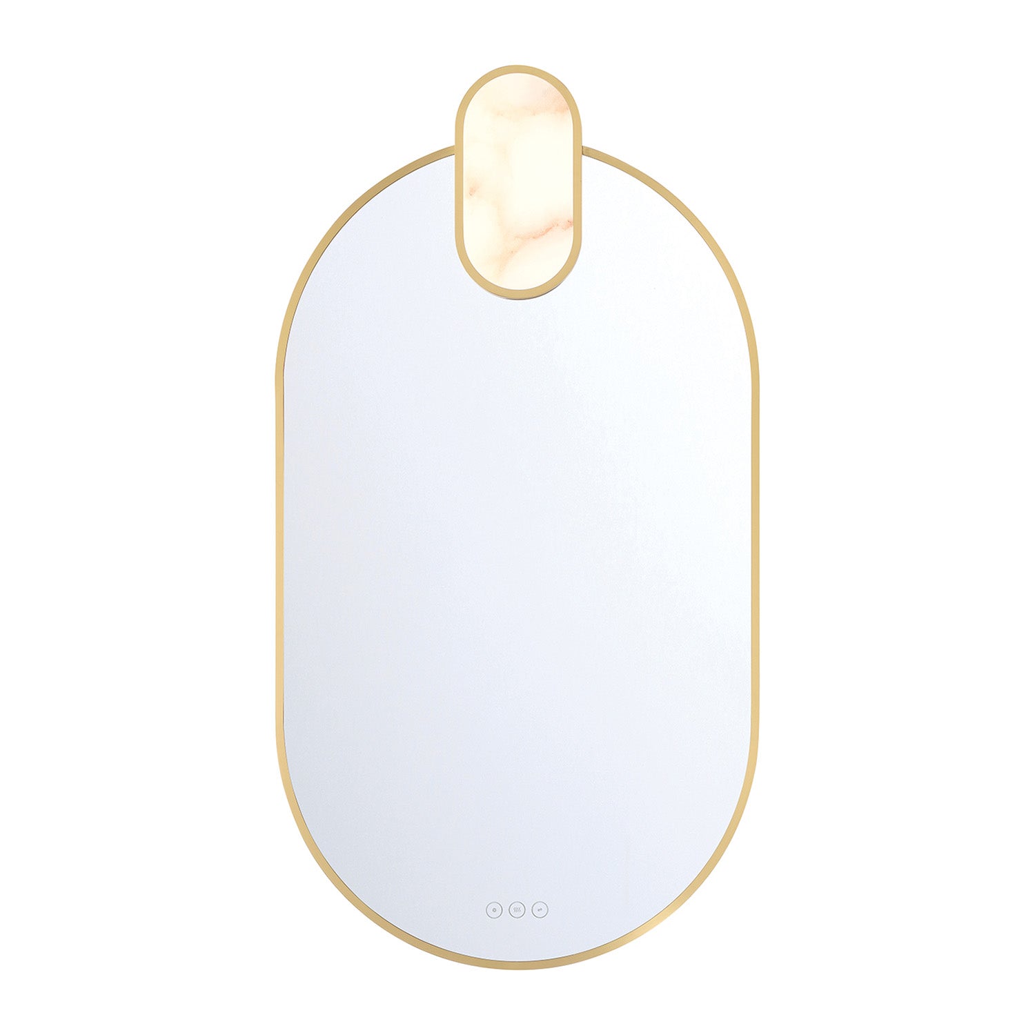 • Elegant oval mirror featuring integrated LED lighting and a luxurious alabaster accent