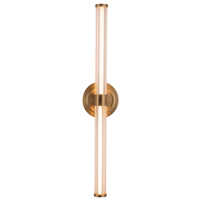 The Orville LED Vanity Light brings refined contemporary elegance to interior spaces with its sleek cylindrical design. This sophisticated fixture features a striking clear ribbed acrylic tube that creates beautiful light diffusion patterns while adding dimensional texture. The brushed brass finish provides a warm metallic accent that enhances the vanity light's modern aesthetic, with thoughtfully designed end caps that complete the polished look. Energy-efficient LED technology delivers exceptional illumination with minimal energy consumption. With its slim profile, the Orville vanity light is perfect for bathrooms, hallways, entryways, or as a statement lighting element, bringing architectural interest and sophisticated illumination to any space.