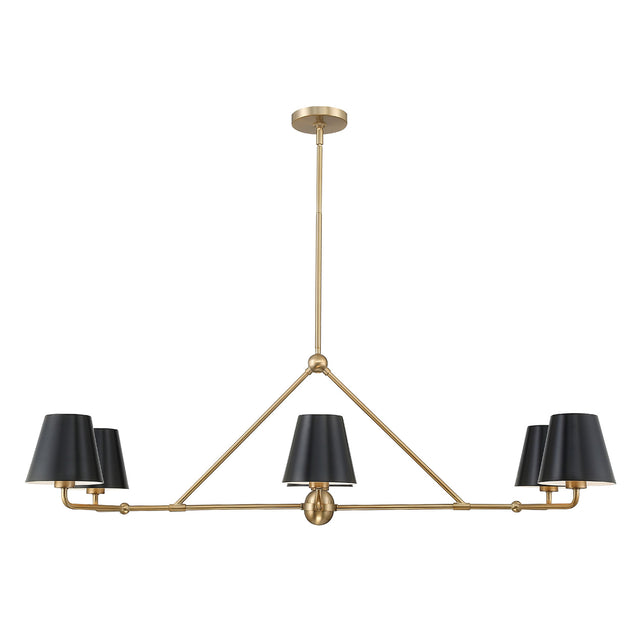 Banks 6 Light Linear Chandelier 46", Matte Black and Brass
