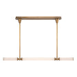 The Blain Linear Pendant transforms the collection's art deco inspired aesthetic into a dramatic horizontal statement piece. This sophisticated linear chandelier features an elongated opal ribbed glass tube that spans nearly four feet, creating beautiful light patterns across its frosted textured surface. The warm Vintage Brass finish provides an elegant framework, with distinctive decorative end caps and a rectangular canopy that perfectly complement the illuminated glass element. The pendant's minimalist design creates a strong architectural presence while delivering powerful illumination. Its integrated LED technology offers exceptional brightness and color rendering, making it ideal for dining tables, kitchen islands, or as a statement piece in modern living areas.