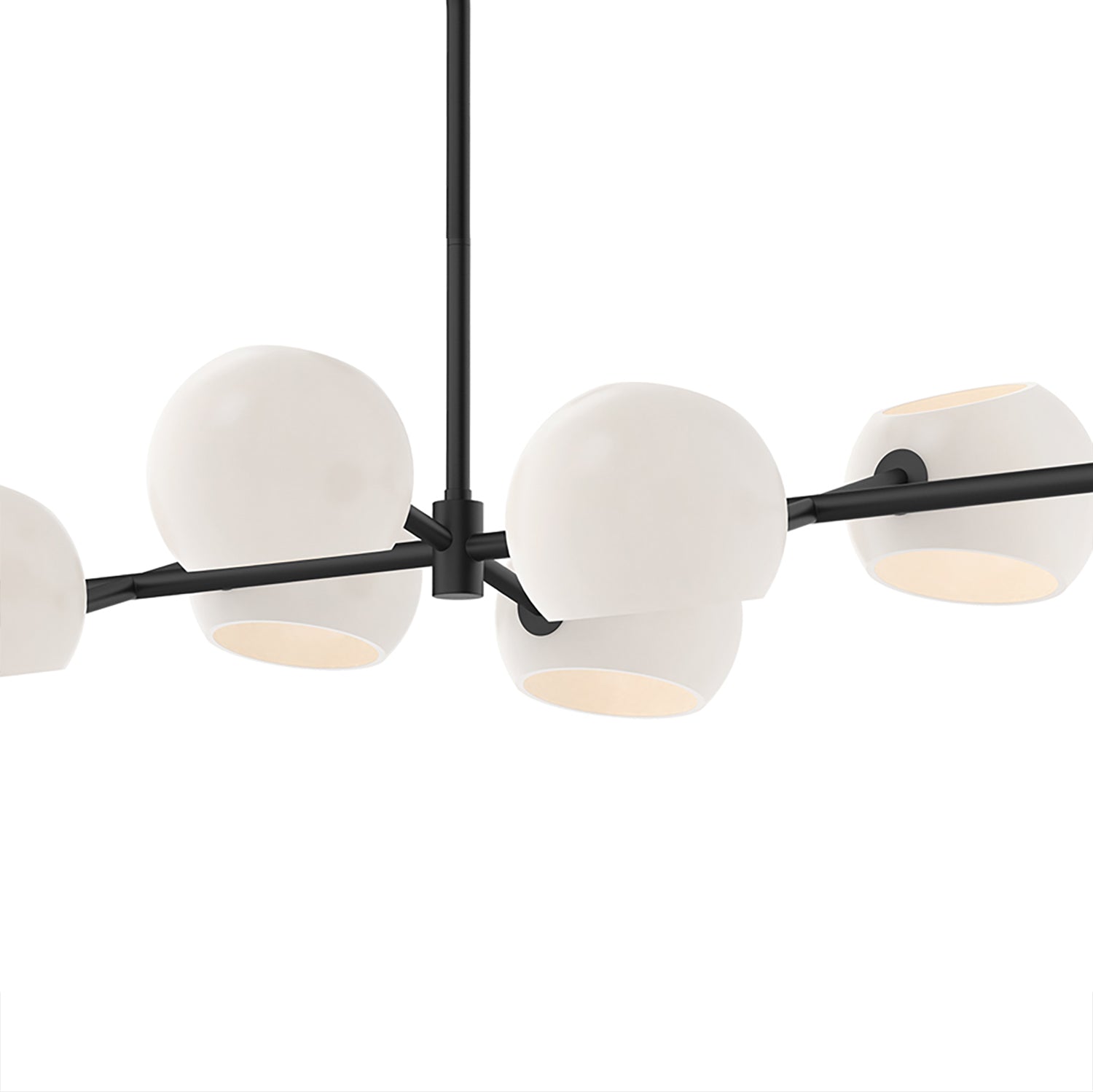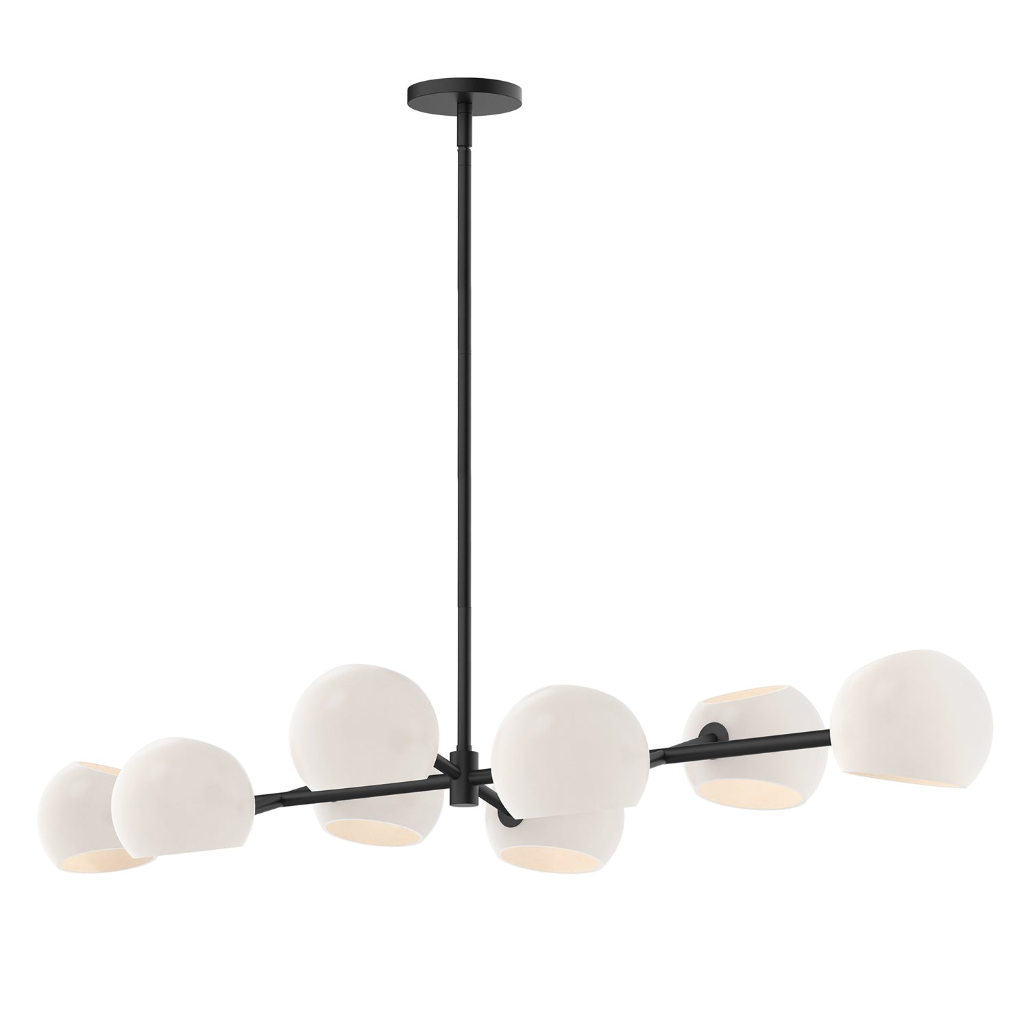 Flynn 8 Light Linear Chandelier 48", Matte Black with Opal Glass