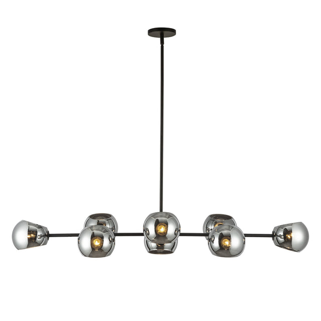 Flynn 8 Light Linear Chandelier 48", Matte Black with Mirrored Smoke Glass