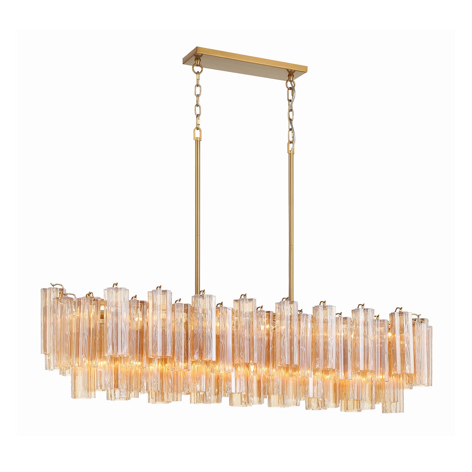 Grace Linear Chandelier 52", Brass with Topaz Glass