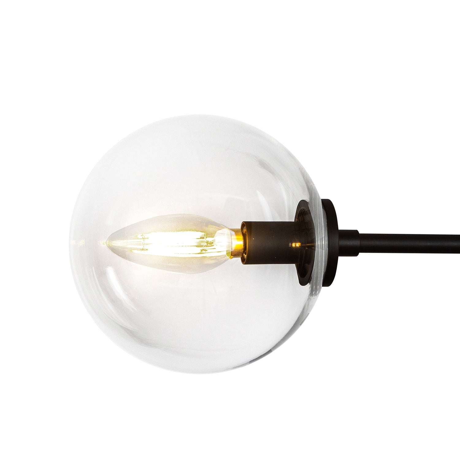 • The Gurt Linear Pendant features a modern sputnik design with four clear glass spheres positioned along a linear frame in a matte black finish