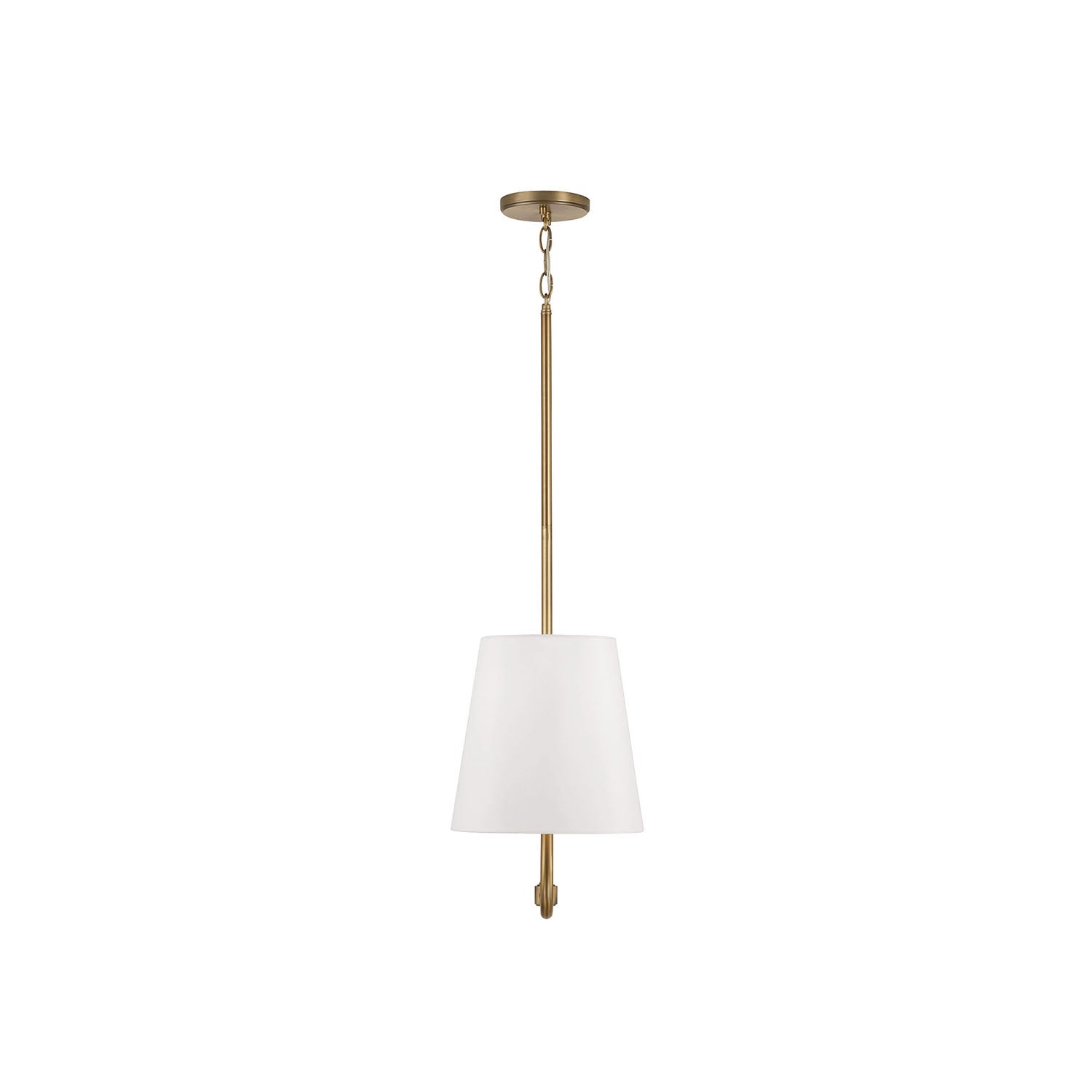 • Timeless aged brass and white fabric combination complements classic, traditional, and contemporary interiors