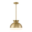 • Features a mid-century inspired brass metal dome with a flat opal glass shade