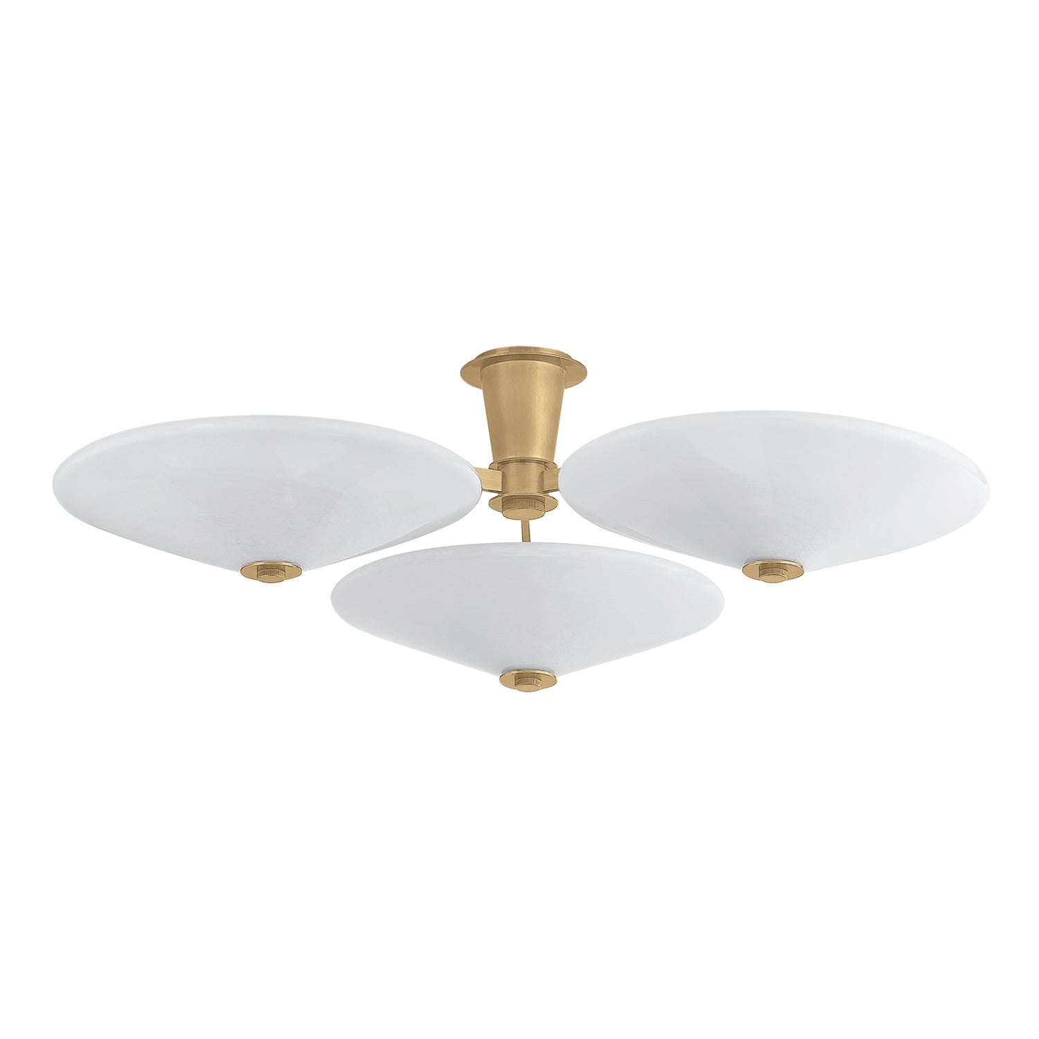 Imogen LED 3 Light Flush Mount 45", Vintage Brass and Opal Glass