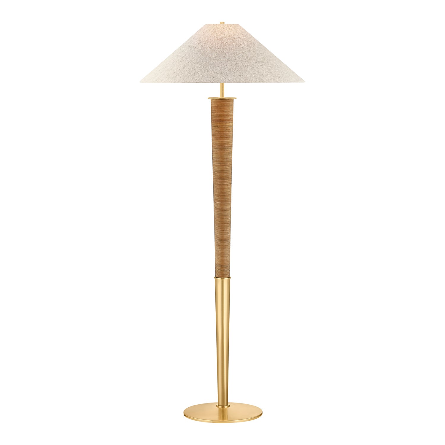Arcadia Floor Lamp 68", Aged Brass and Rattan