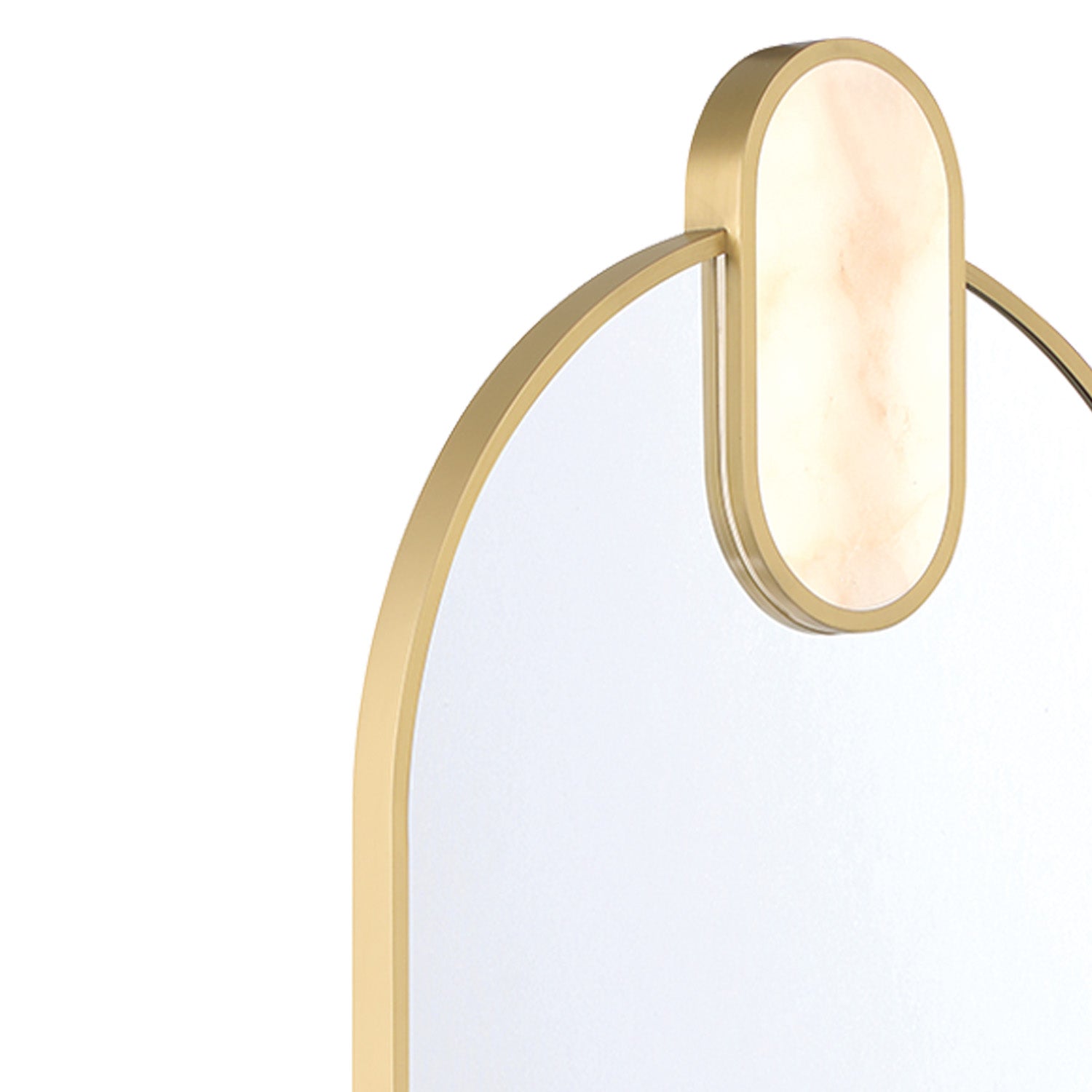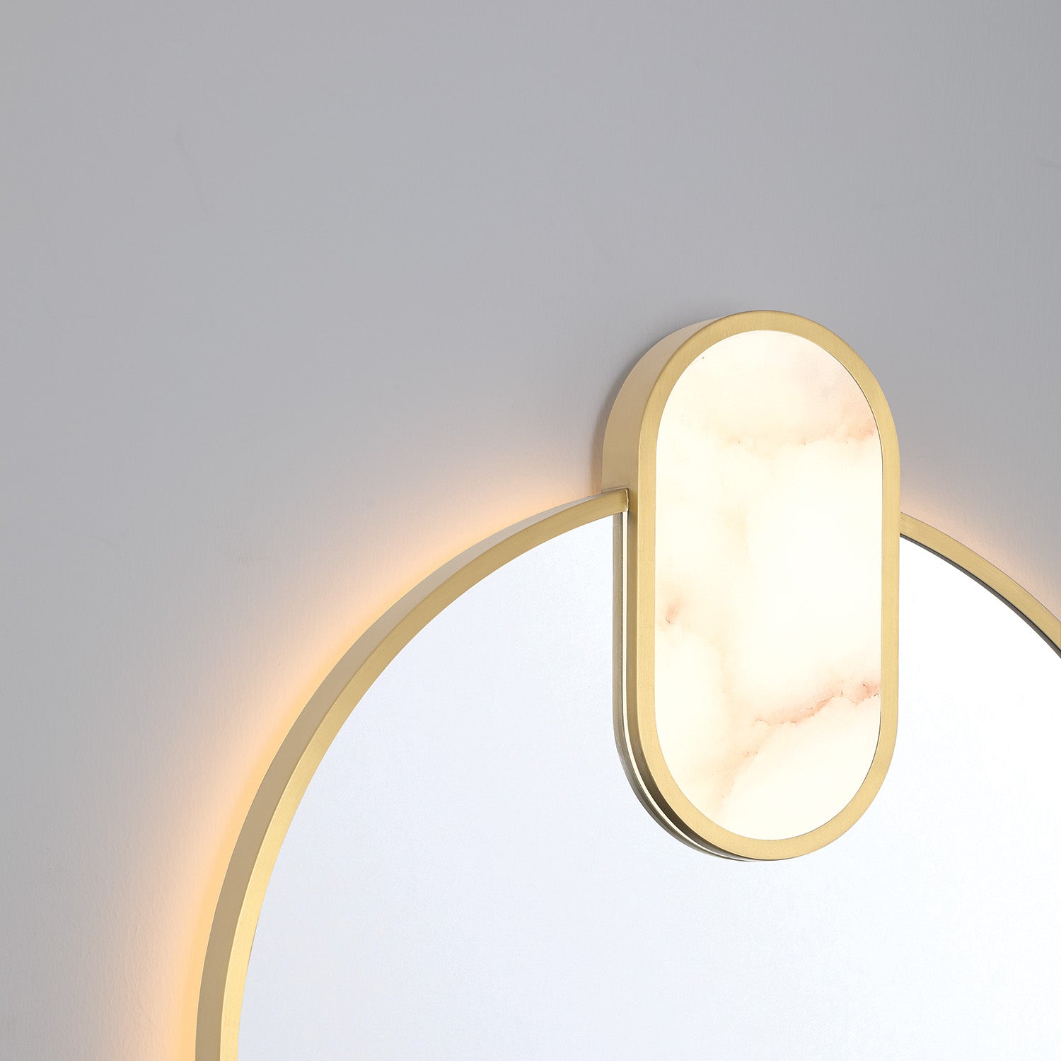 • Elegant oval mirror featuring integrated LED lighting and a luxurious alabaster accent