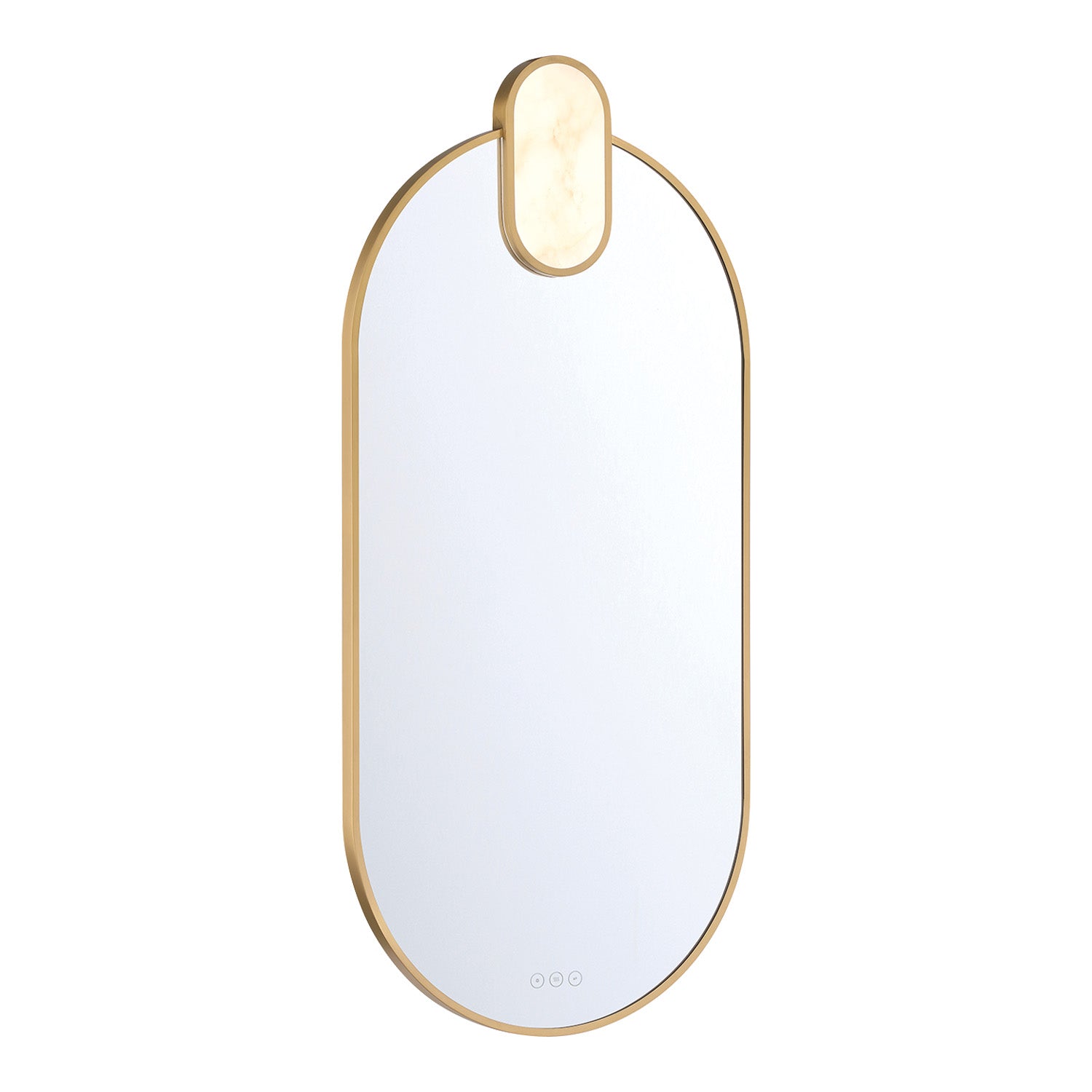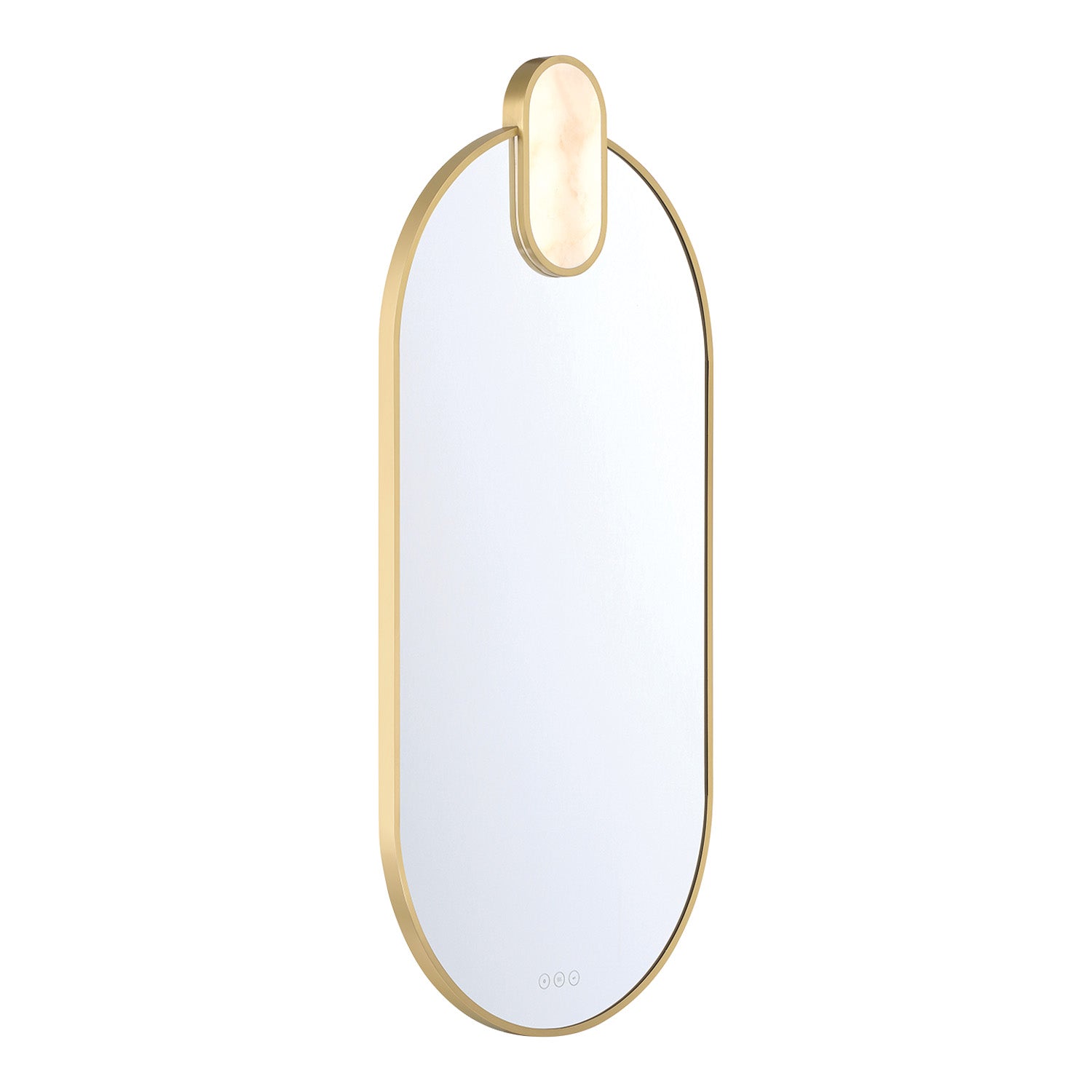 Palmer Large LED Oval Mirror 21" x 45", Satin Brass and Alabaster