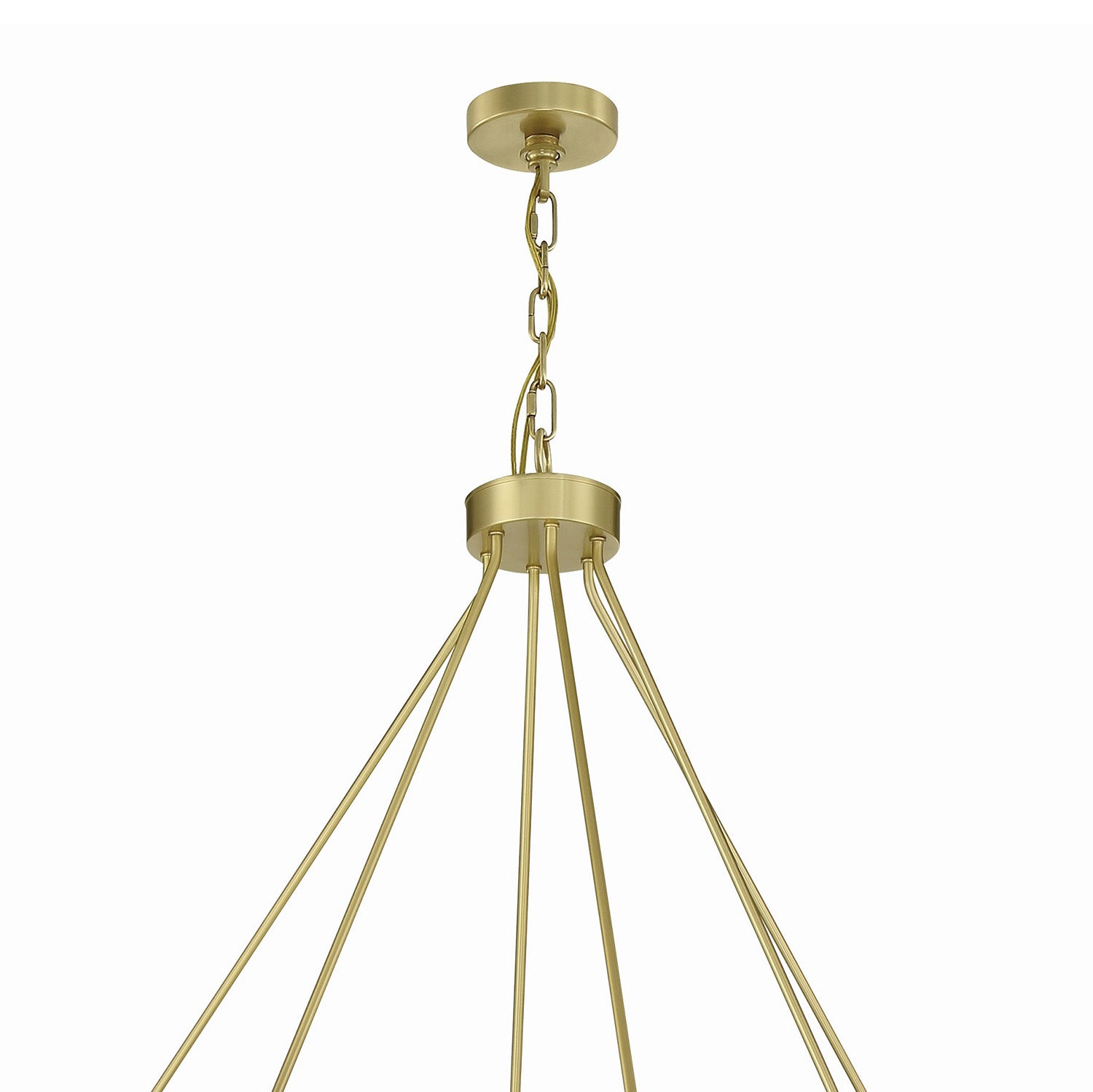 The Arlo 30 Light Two-Tier Ring Chandelier 59" elevates minimalist lighting through the use of luxurious materials and a refined finish. This fixture artfully balances a grand architectural presence with the delicate, organic beauty of hand-cut stone. The design features a double-tiered frame meticulously crafted with sleek rods that support premium alabaster shades. Functionally timeless, it provides exceptional flexibility, as it can be hung with either upward or downward-facing light to perfectly set the mood of any expansive room. The Soft Brass finish adds a layer of timeless elegance to the minimalist frame, reflecting light beautifully even when unlit.