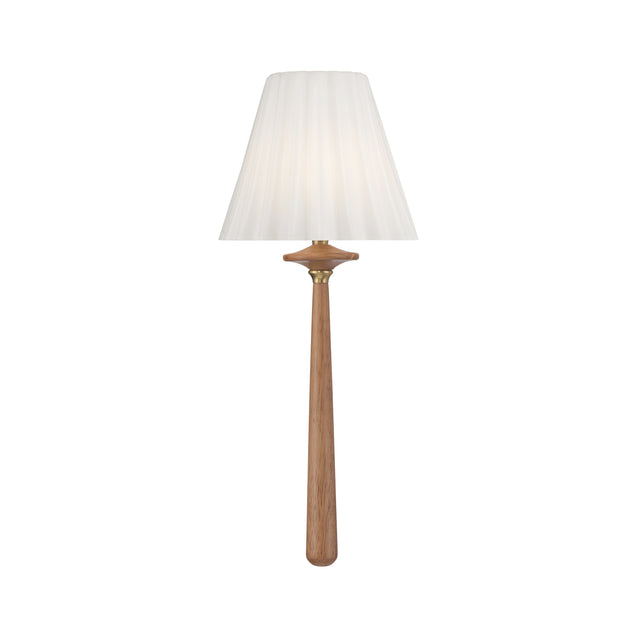 The Callum Wall Sconce 17" blends natural warmth with refined detail. Featuring a pleated strie glass shade paired with a wooden accent, this fixture strikes a balance between modern craftsmanship and timeless design, bringing character and sophistication to interiors. The Aged Brass and Natural Wood finish provides a warm, organic feel that complements its elegant, tapered silhouette. Thoughtfully designed to provide soft, diffused illumination, this minimalist wall sconce is an ideal choice for a hallway, bedroom, or living area seeking a touch of modern organic style. With its UL damp rating, it offers both functional beauty and versatile appeal for various indoor applications.