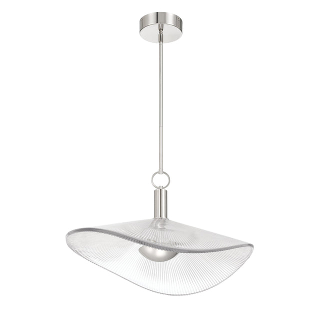 Celine Large LED Pendant 24", Polished Nickel and Clear Ribbed Glass