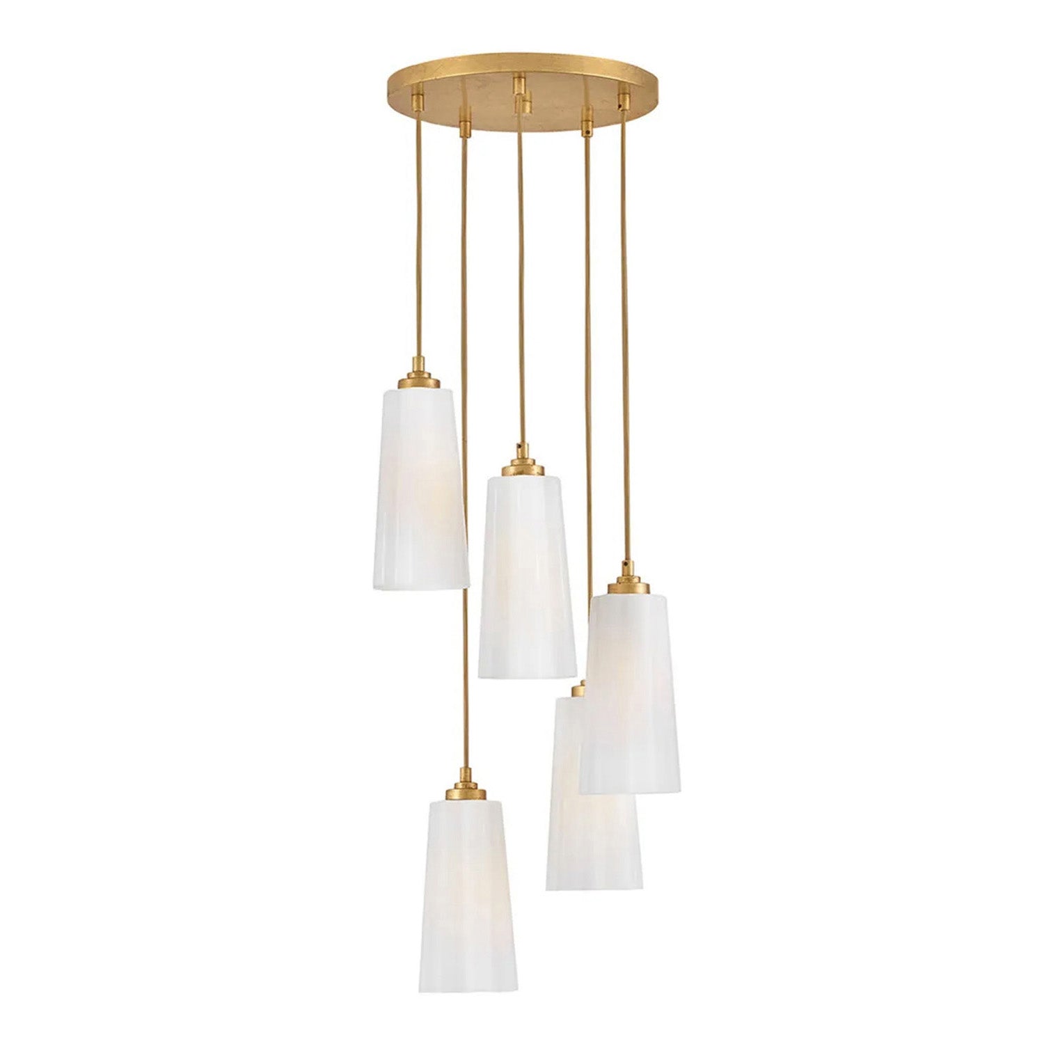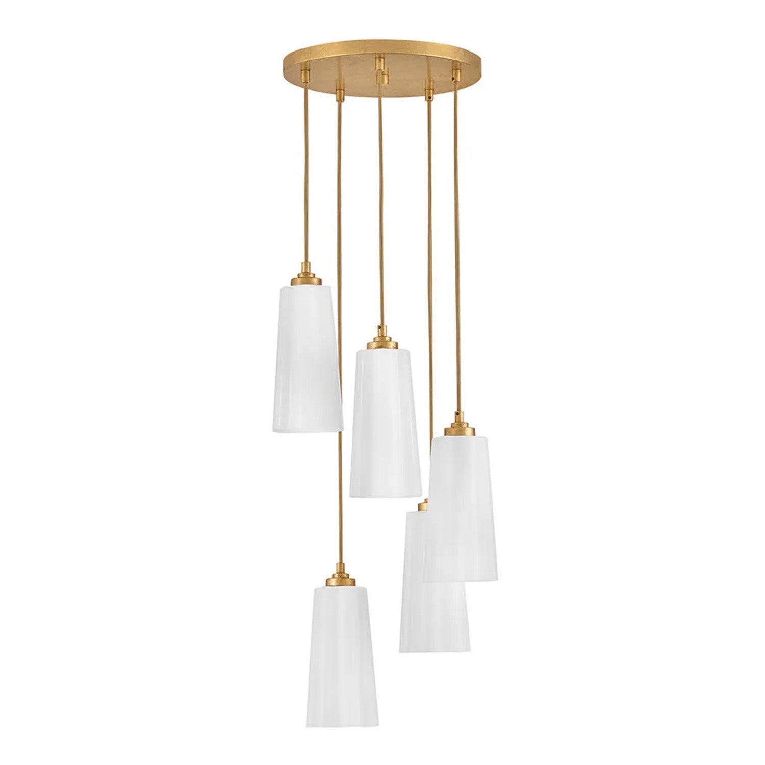 Connie 5 Light Pendant 16", Rustic Brass and Opal Glass