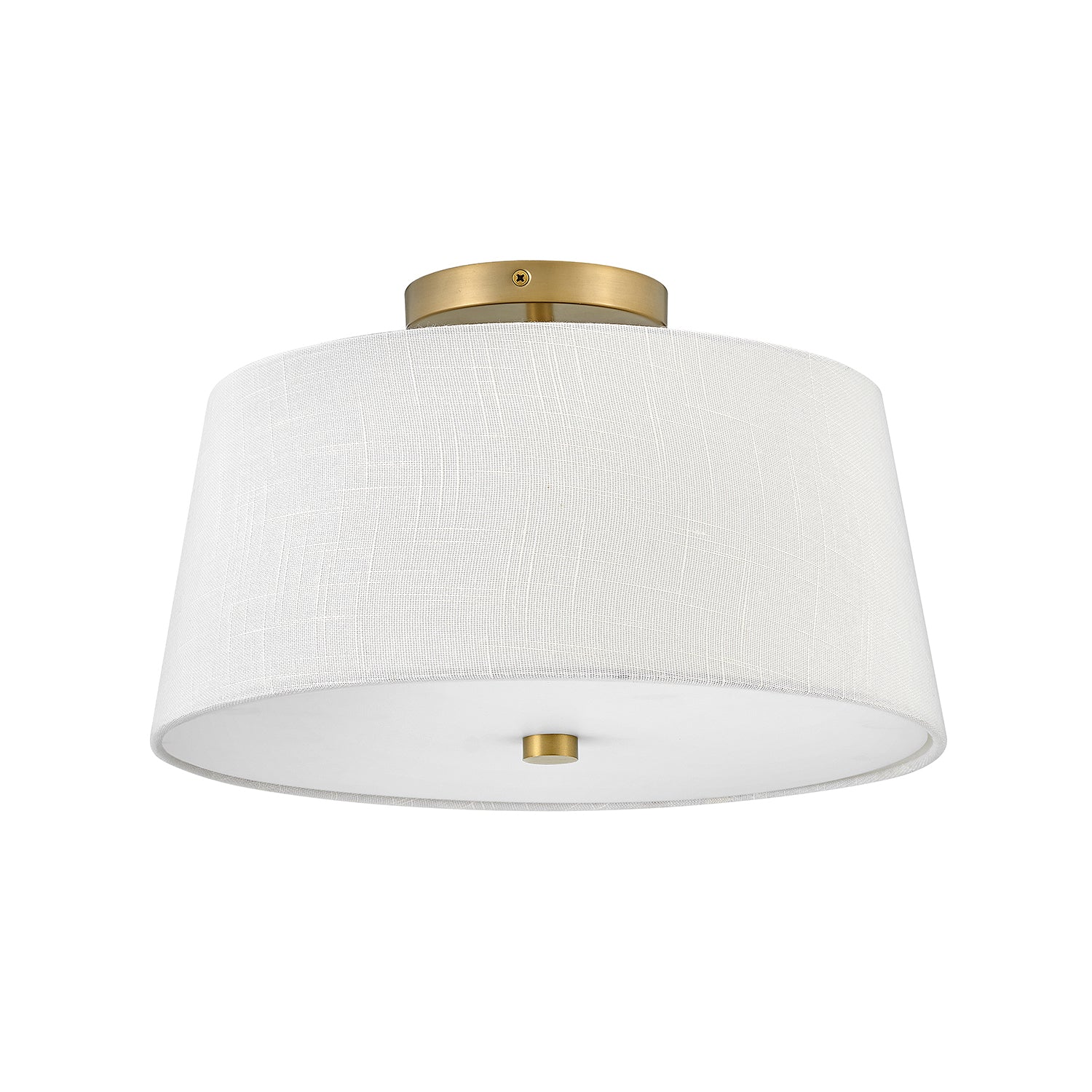 The Declan Flush Mount makes a refined statement, defined by its crisp lines and timeless, tailored design. The fixture features a white linen drum shade with a built-in opal glass diffuser, creating a balanced and elegant silhouette perfect for low ceilings. This flush mount is thoughtfully designed to provide soft, fully diffused illumination, making it an ideal choice for a hallway, bedroom, or dressing area. With its ETL dry rating, it offers both functional beauty and versatile appeal. The warm Satin Brass finish enhances the fixture's tailored silhouette, resulting in a look of enduring style and timeless elegance.