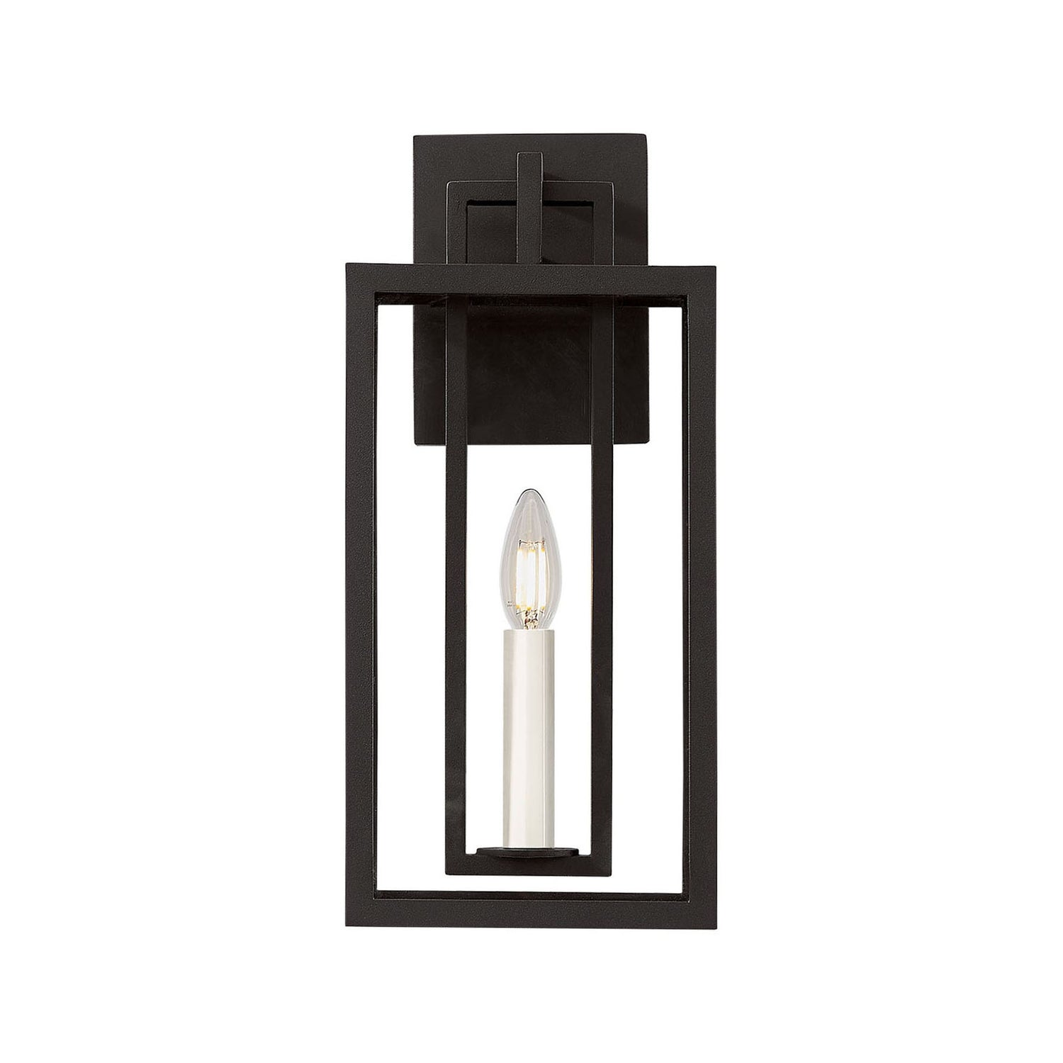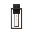 The Durham Small Outdoor Wall Light is a traditional outdoors lantern that makes a sophisticated statement with its elongated, geometric frame and clean lines. The sturdy aluminum frame holds clear glass panels, creating a modern, streamlined silhouette that beautifully showcases the light source. Designed to withstand the elements, this fixture provides bright, welcoming illumination, enhancing the safety and curb appeal of your home. With its ETL wet rating, this outdoor light fixture is a perfect solution for any entryway, porch, or exterior wall. The sophisticated textured black finish delivers enduring, traditional style and a perfect blend of form and function.