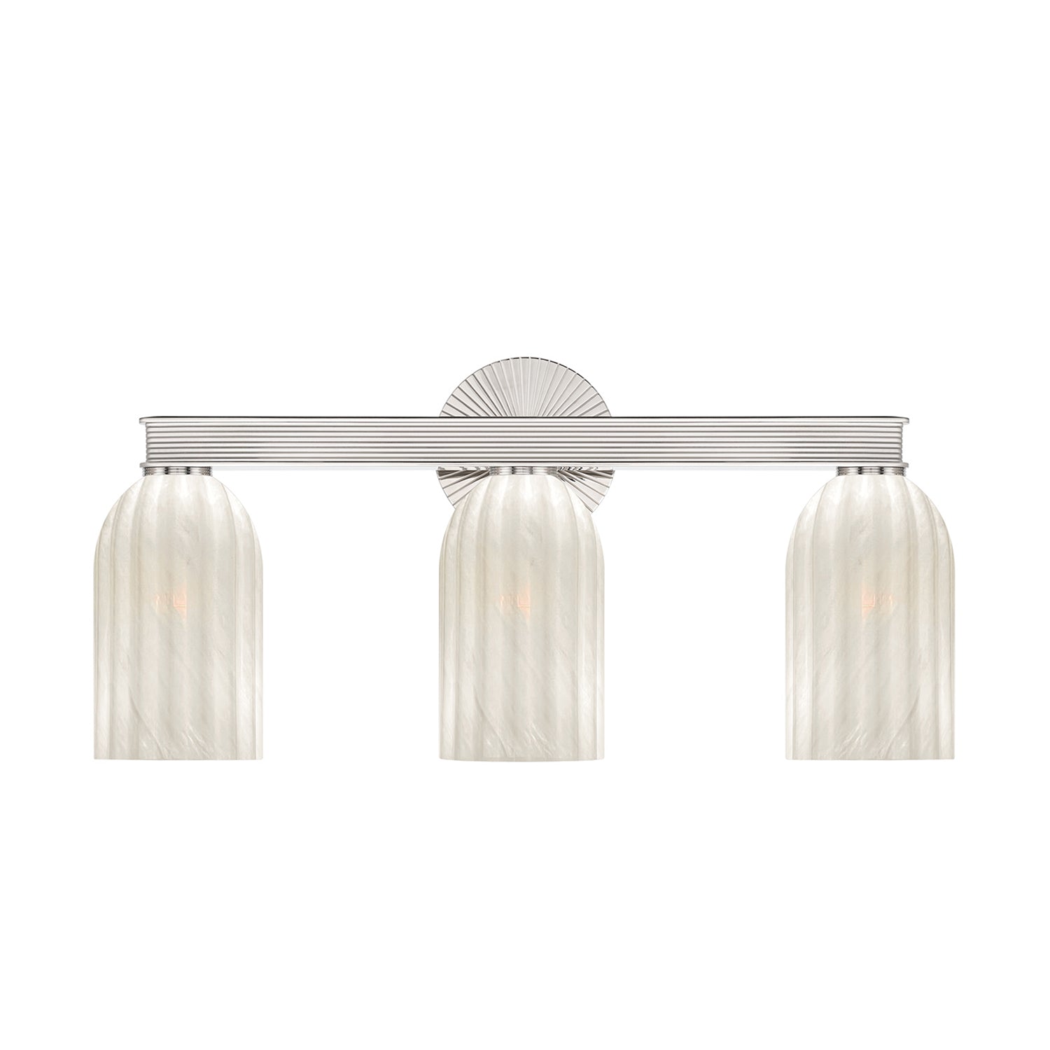 Elise 3 Light Vanity, Polished Nickel and Ribbed Strie Glass