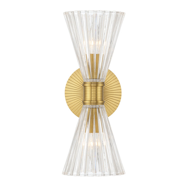 Eliza 2 Light Vanity, Brass and Clear Ribbed Glass