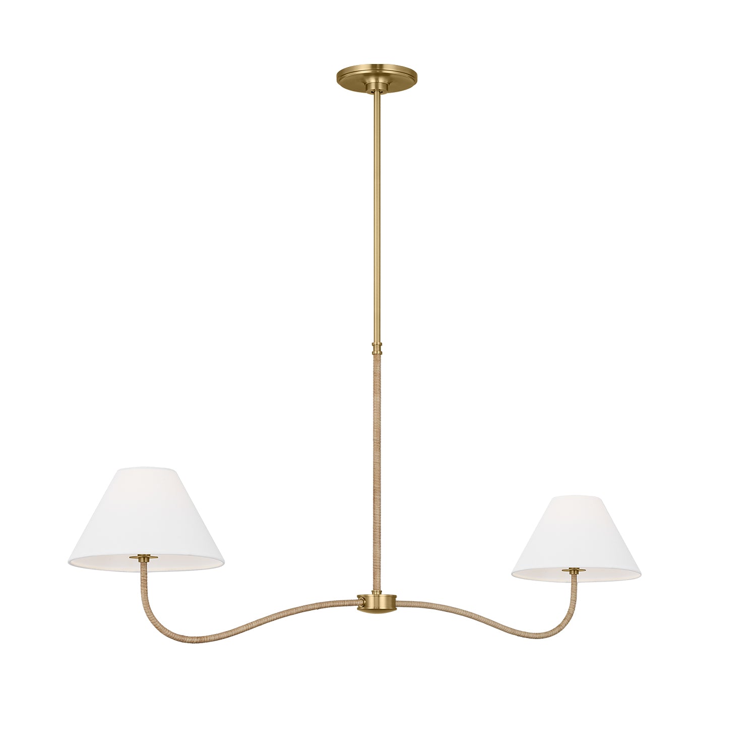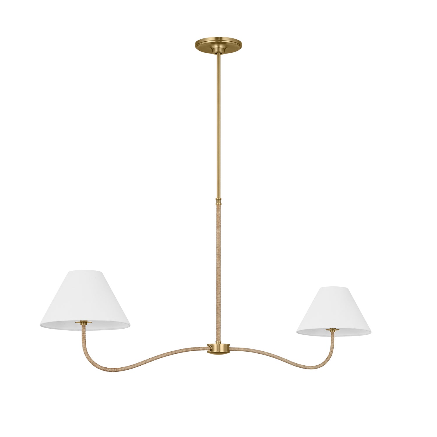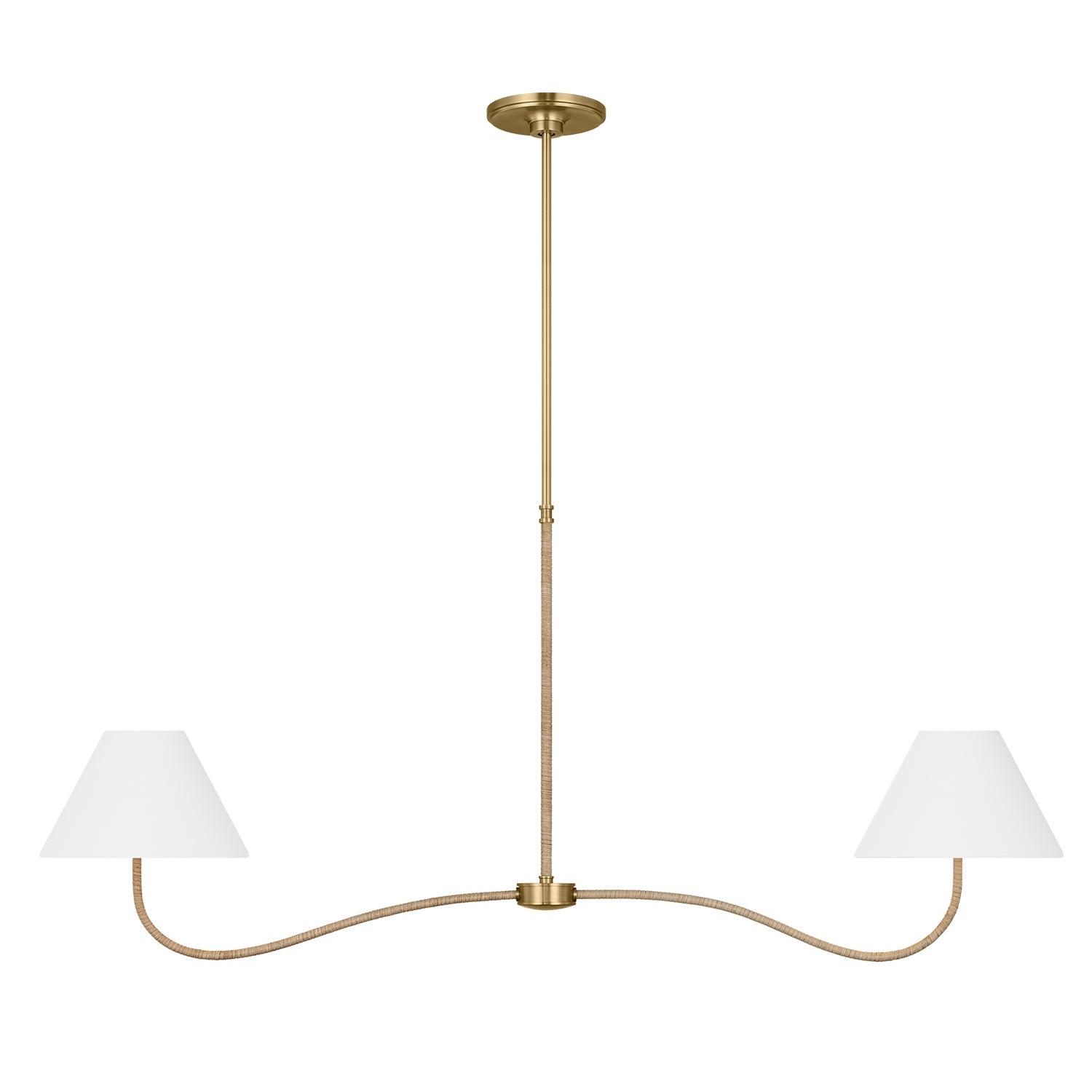 Harlow 2 Light Linear Pendant 51", Modern Brass with Rattan