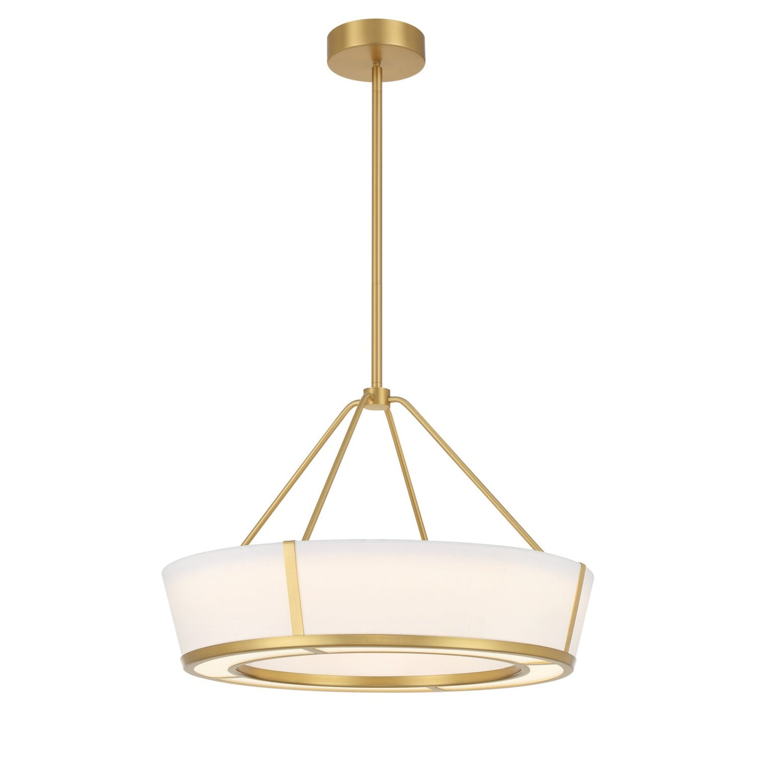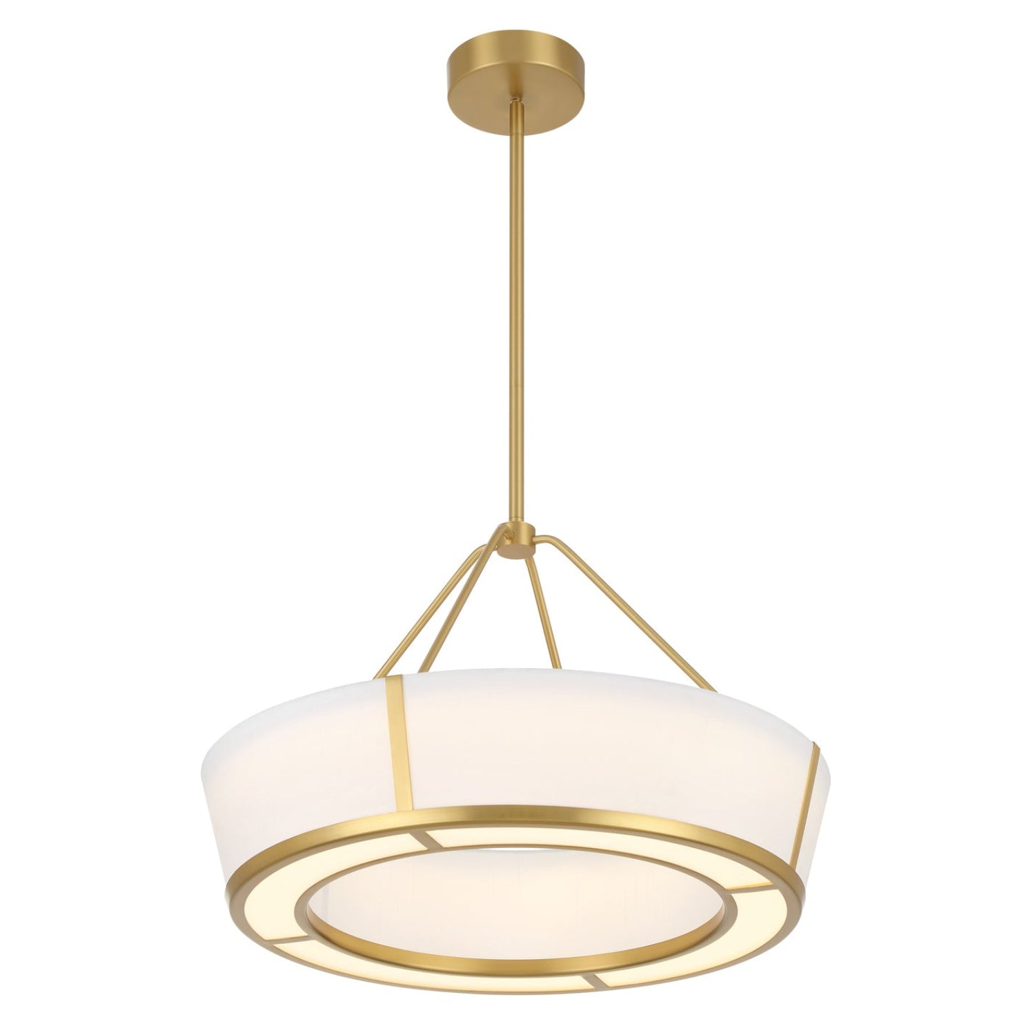 The Hoyt LED Pendant 24" elevates interior environments by pairing a refined fabric shade with an advanced acrylic diffuser for a perfectly balanced, radiant output. Its clean, structured profile brings an air of quiet luxury to contemporary spaces, making it an ideal choice for open-concept kitchens, dining rooms, and high-end offices. The luminous antique gold finish adds a warm, metallic glow that reflects light beautifully even when unlit. Merging high-performance LED technology with a versatile aesthetic, this pendant is a masterclass in modern functional art.