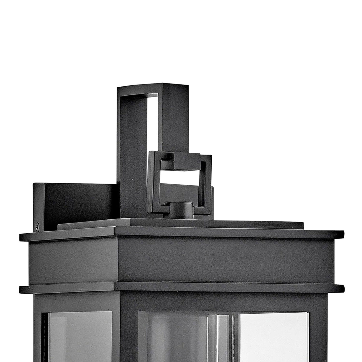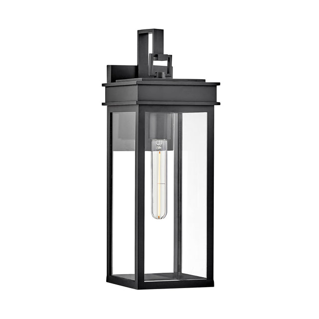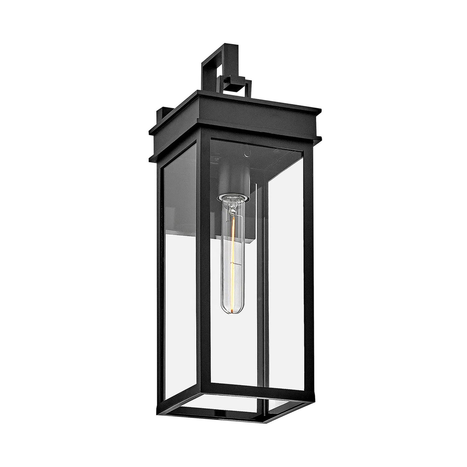 The Monterey Medium Outdoor Wall Light is a classic exterior lantern that features a charming, traditional style with its clean lines and a distinctive top handle. The traditional rectangular frame and distinctive curved top bracket hold clear glass panels, creating a welcoming, familiar silhouette that showcases the exposed bulb. Crafted from durable materials, this fixture is built to withstand the elements, providing bright, welcoming illumination that enhances the safety and curb appeal of your home. With its ETL wet rating, this outdoor light fixture is a perfect solution for any entryway, porch, or exterior wall. The sophisticated Black finish delivers enduring, traditional style and a perfect blend of form and function.