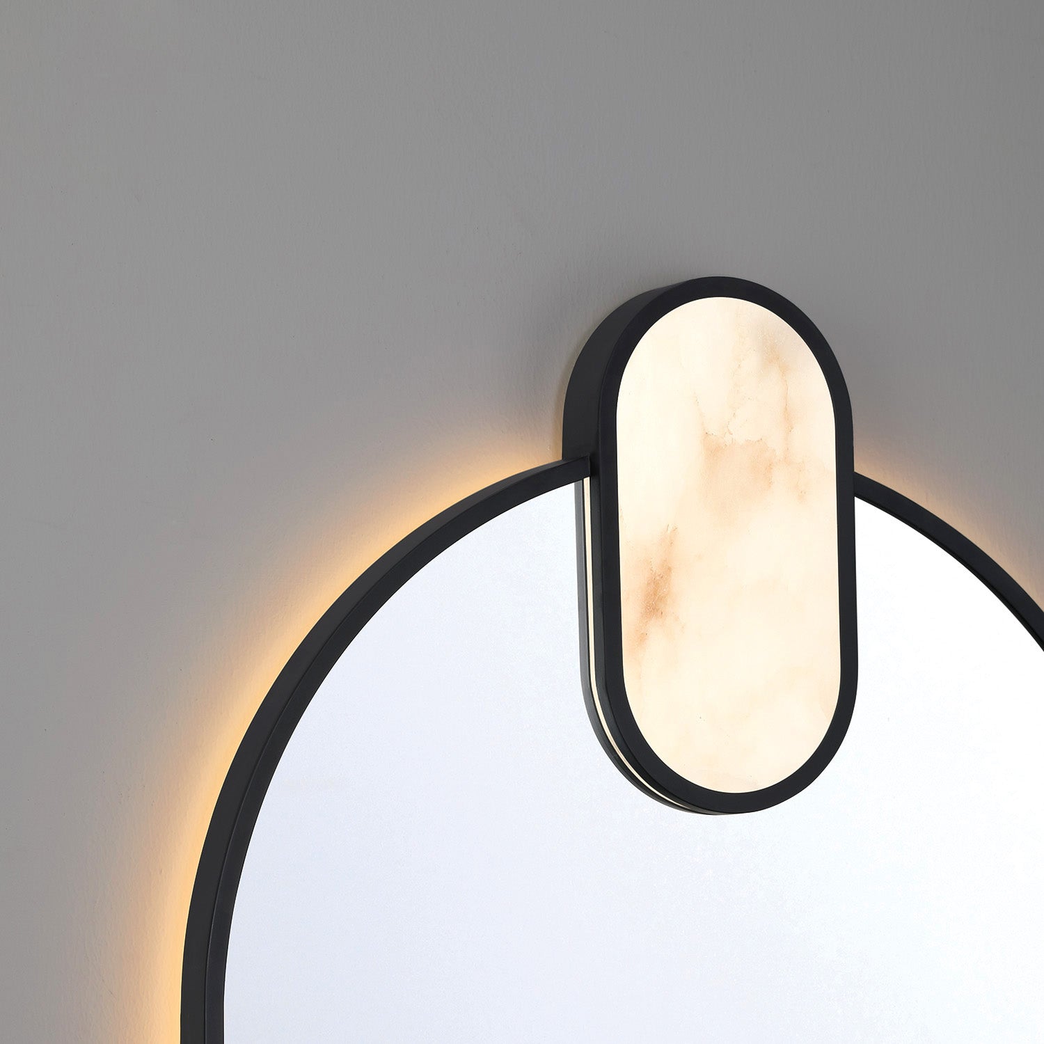 • Elegant oval mirror featuring integrated LED lighting and a luxurious alabaster accent