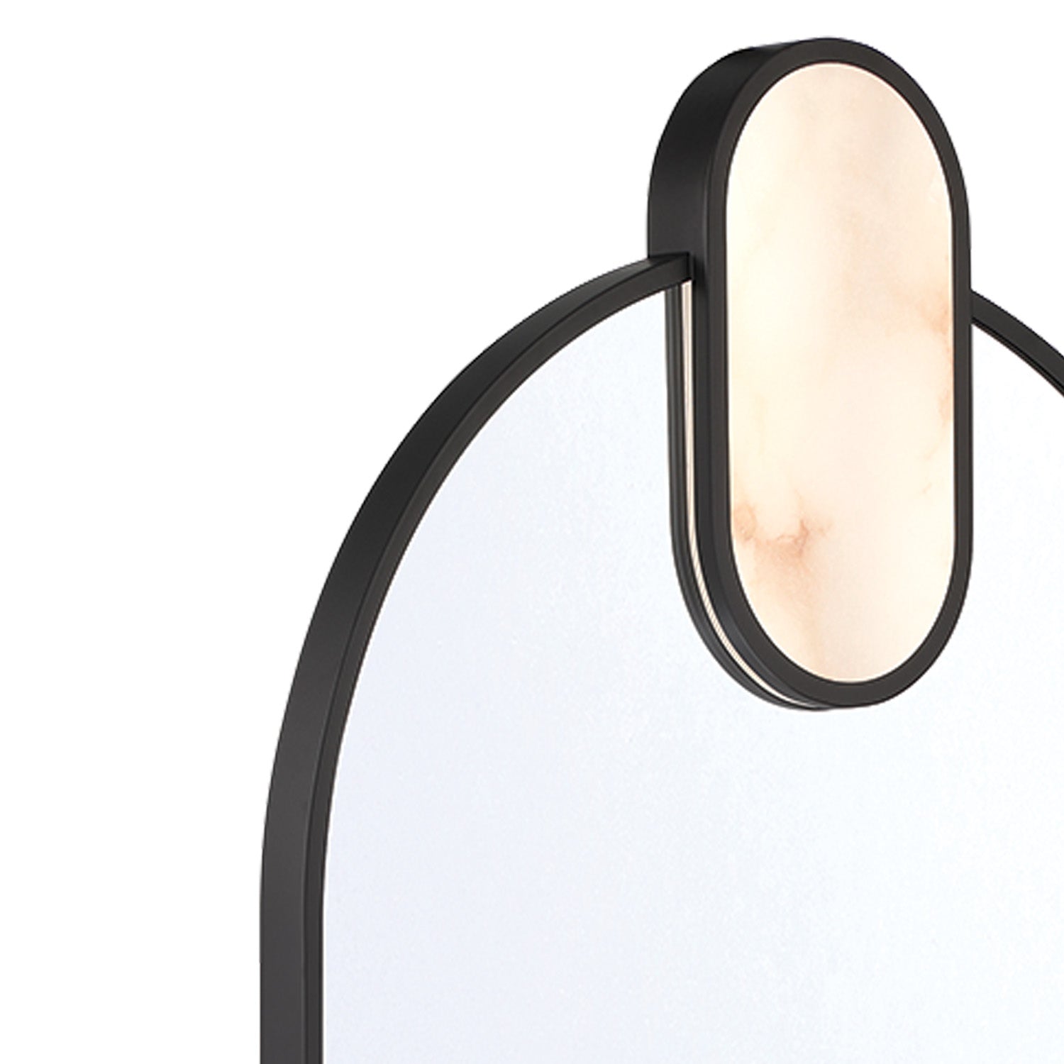The Palmer Large LED Oval Mirror makes a refined statement with its clean lines and elegant design. A sleek metal frame surrounds a beautifully rounded mirror, while a luxurious alabaster accent at the top provides a soft, sophisticated glow. The integrated LED lighting offers advanced Smart Features, including stepless dimming, three adjustable color temperatures (3000K, 4500K, 6500K), and an on/off defogger for a crystal-clear reflection. ADA compliant and ETL damp-rated, this mirror is a perfect and elegant addition to a bathroom or powder room. The beautiful Matte Black frame beautifully complements the natural beauty of the alabaster, bringing a touch of timeless style to your home.