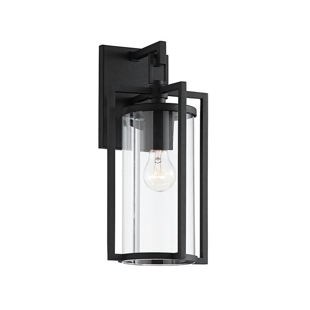 The Peyton Small Outdoor Wall Light is a modern take on a traditional lantern, making a sophisticated statement with its clean lines and open cage design. The sturdy aluminum frame holds a clear glass cylinder, creating a refined silhouette that beautifully showcases the exposed bulb. Designed to withstand the elements, this outdoor wall light provides bright, welcoming illumination, enhancing the safety and curb appeal of your home. With its UL wet rating, it is a perfect solution for any entryway, garage, or exterior wall. The sophisticated finish, textured black, delivers enduring, traditional style and an ideal blend of form and function.