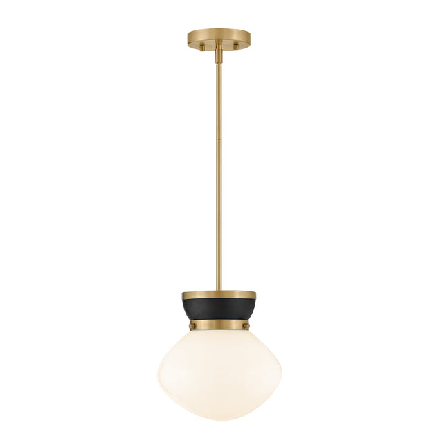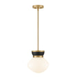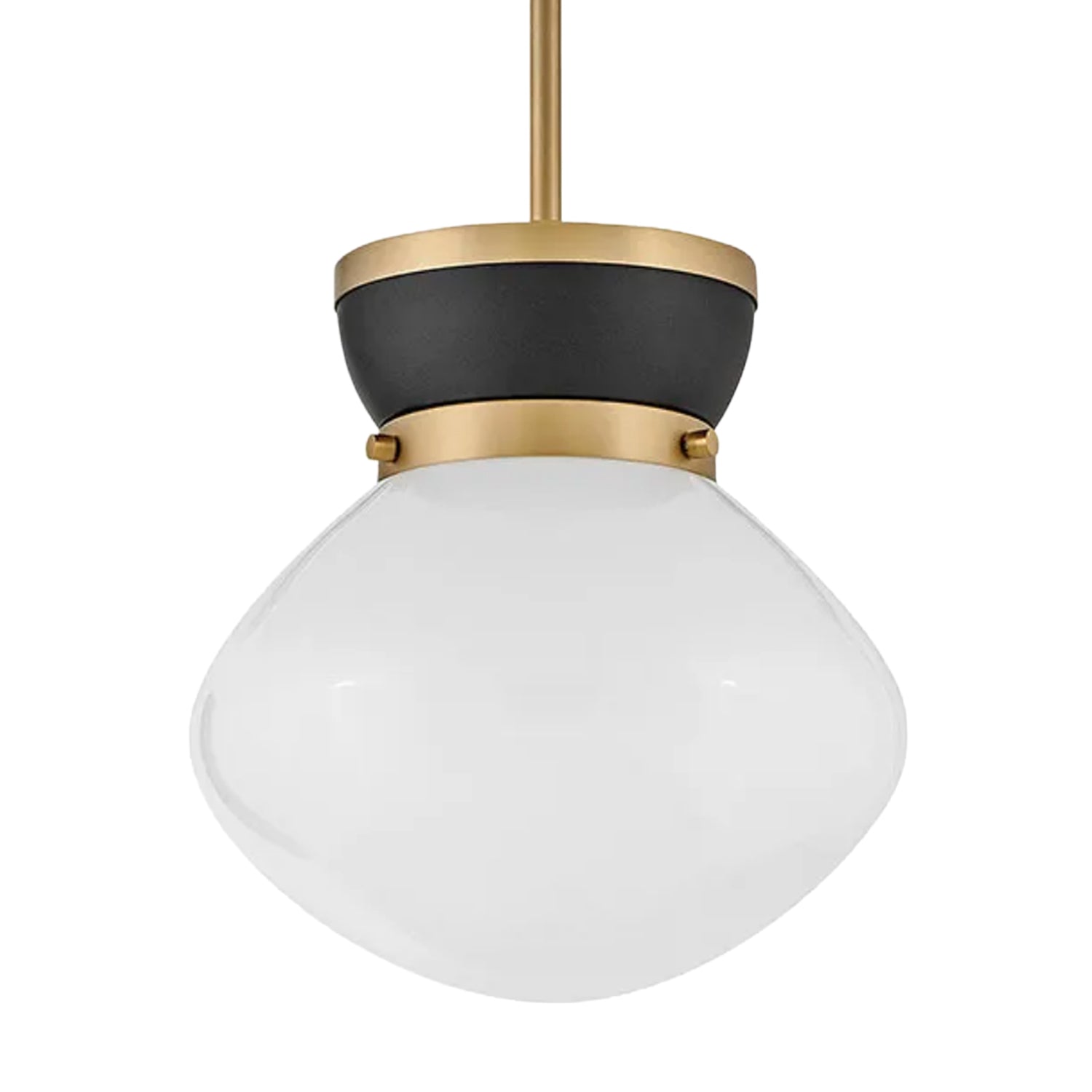 The Piper Small Pendant 10" makes a playful statement, defined by its bold, organic glass and elegant color contrast. This fixture features a unique, softly rounded opal glass globe topped with a distinctive metal band in black. The result is a warm, diffused glow that fills the space with elegant, focused illumination, making this an ideal accent over a kitchen island or dining nook. With its ETL dry rating and sloped ceiling compatibility, it offers both functional beauty and versatile appeal. The sophisticated two-toned finish of satin brass and black adds a sharp, high-contrast visual, delivering enduring style and a perfect blend of elegance and simplicity.