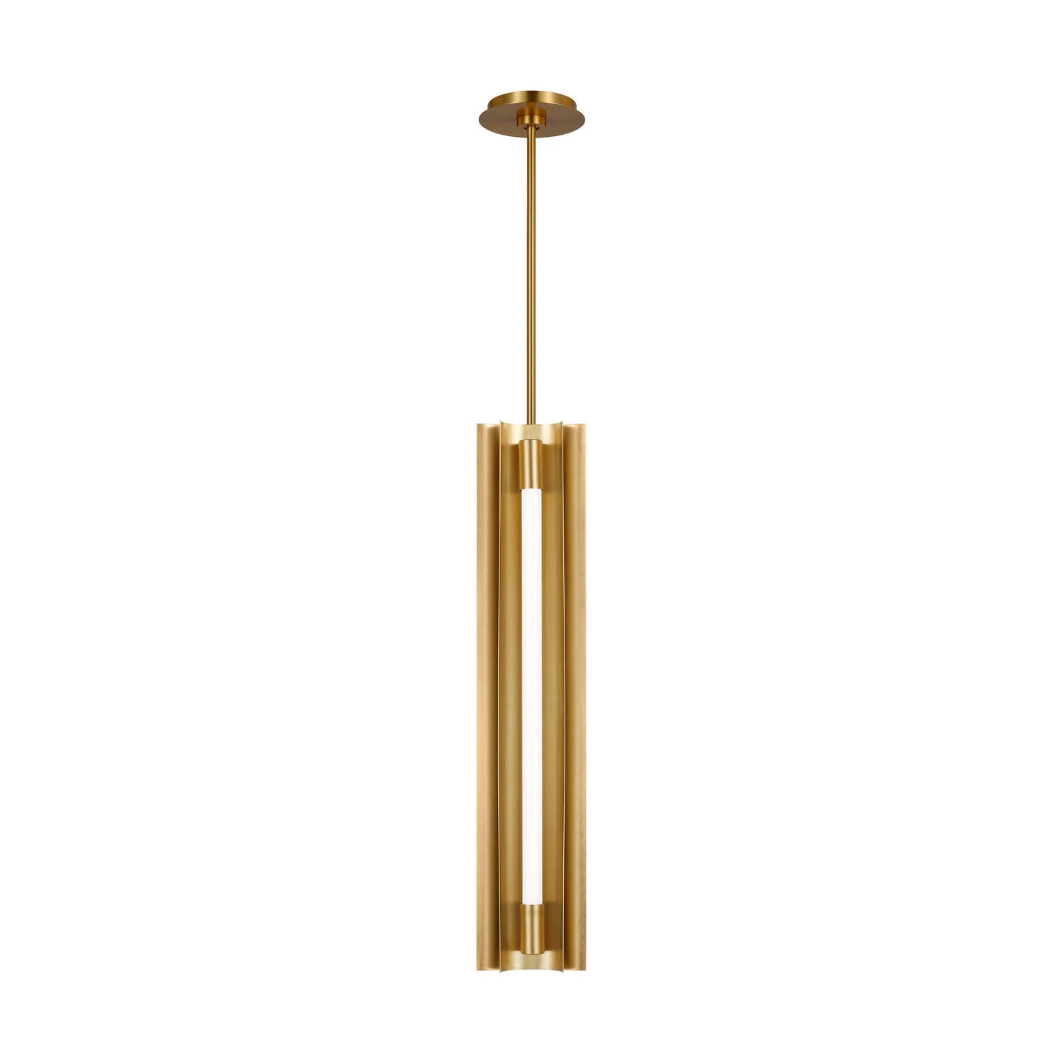 The Robin Slim 4 Light LED Pendant highlights a minimalist combination of light and metal, delivering a sleek and modern design. This fixture features an integrated LED bar that provides a seamless line of illumination, perfect for complementing a wide range of interiors. Its slender, cylindrical profile brings a sense of refined height and style, providing beautiful illumination without overwhelming the space. With its ETL damp rating and sloped ceiling compatibility, it adds both functional beauty and versatile appeal to a kitchen island or entryway. The beautiful Modern Brass finish provides a warm, metallic richness that enhances the fixture's clean lines and minimalist design, bringing a touch of timeless style to your home.