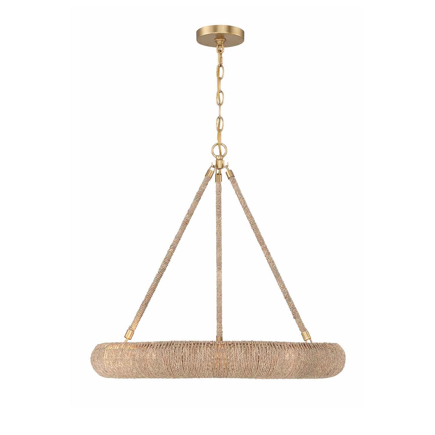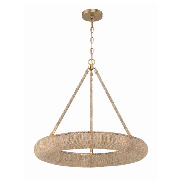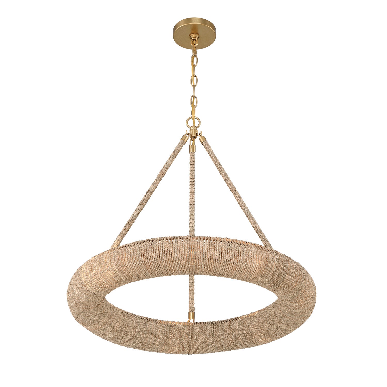 • Artisan-crafted ring chandelier featuring hand-wrapped natural Lake Grass for an organic, textured aesthetic