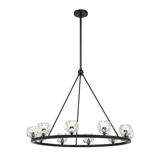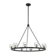 Silas 10 Light Ring Chandelier 36", Matte Black and Faceted Crystal