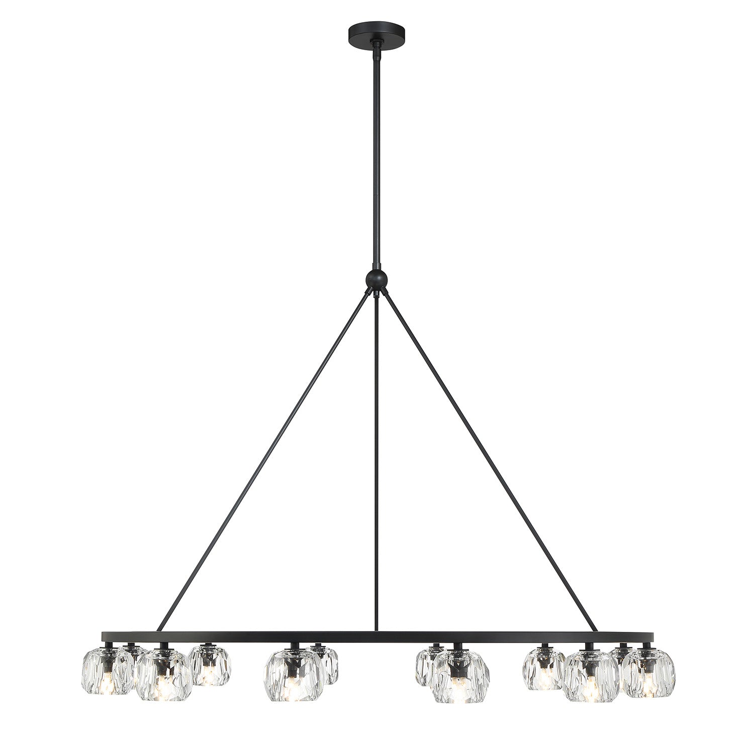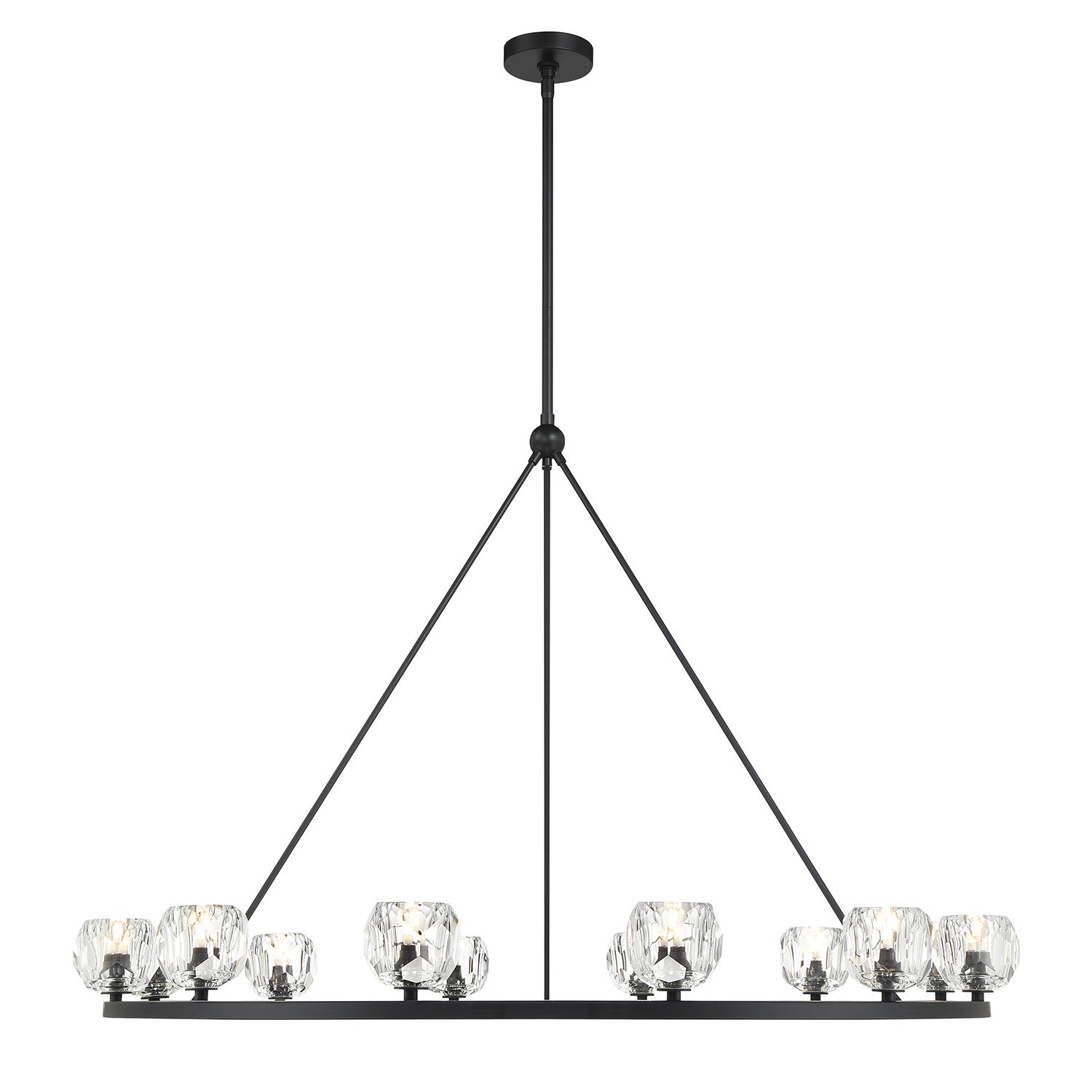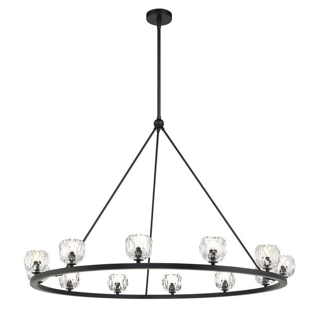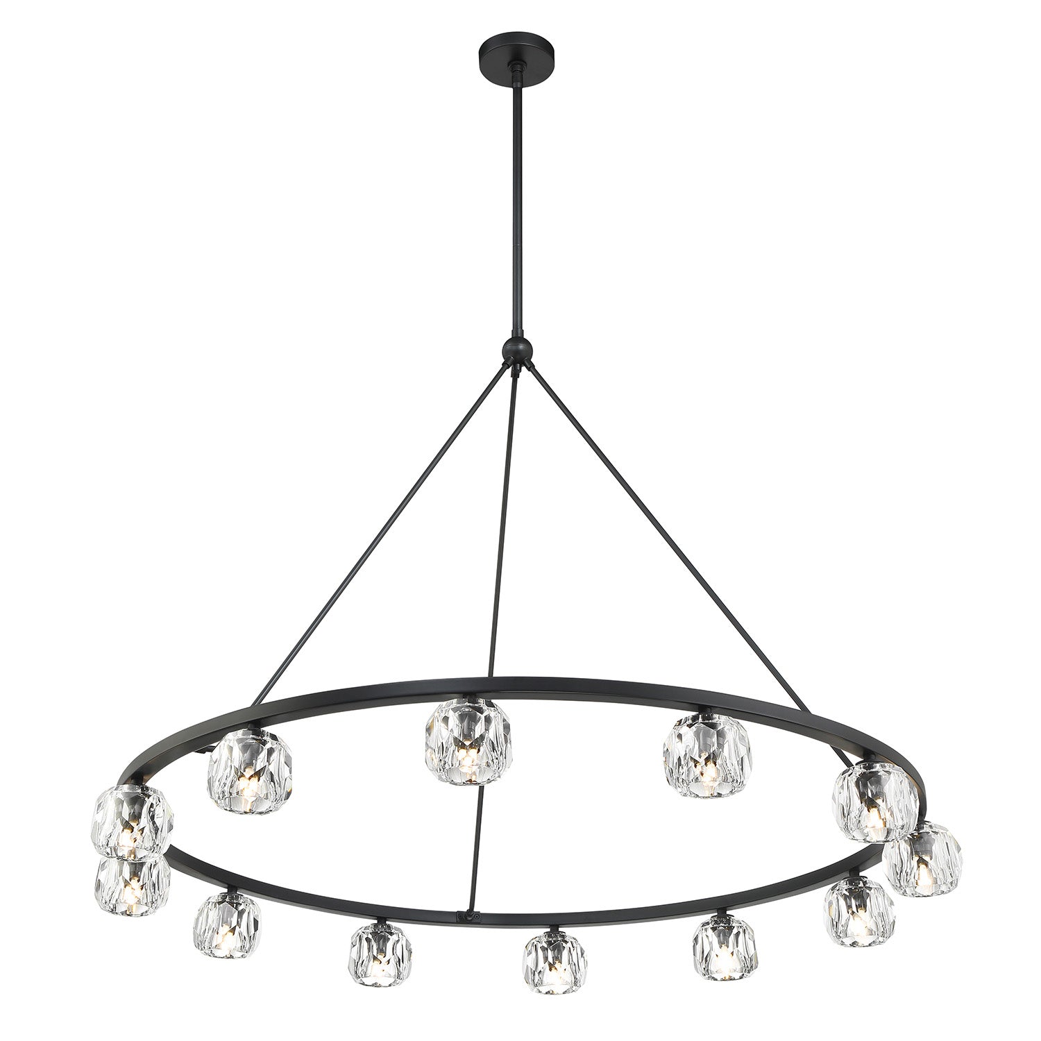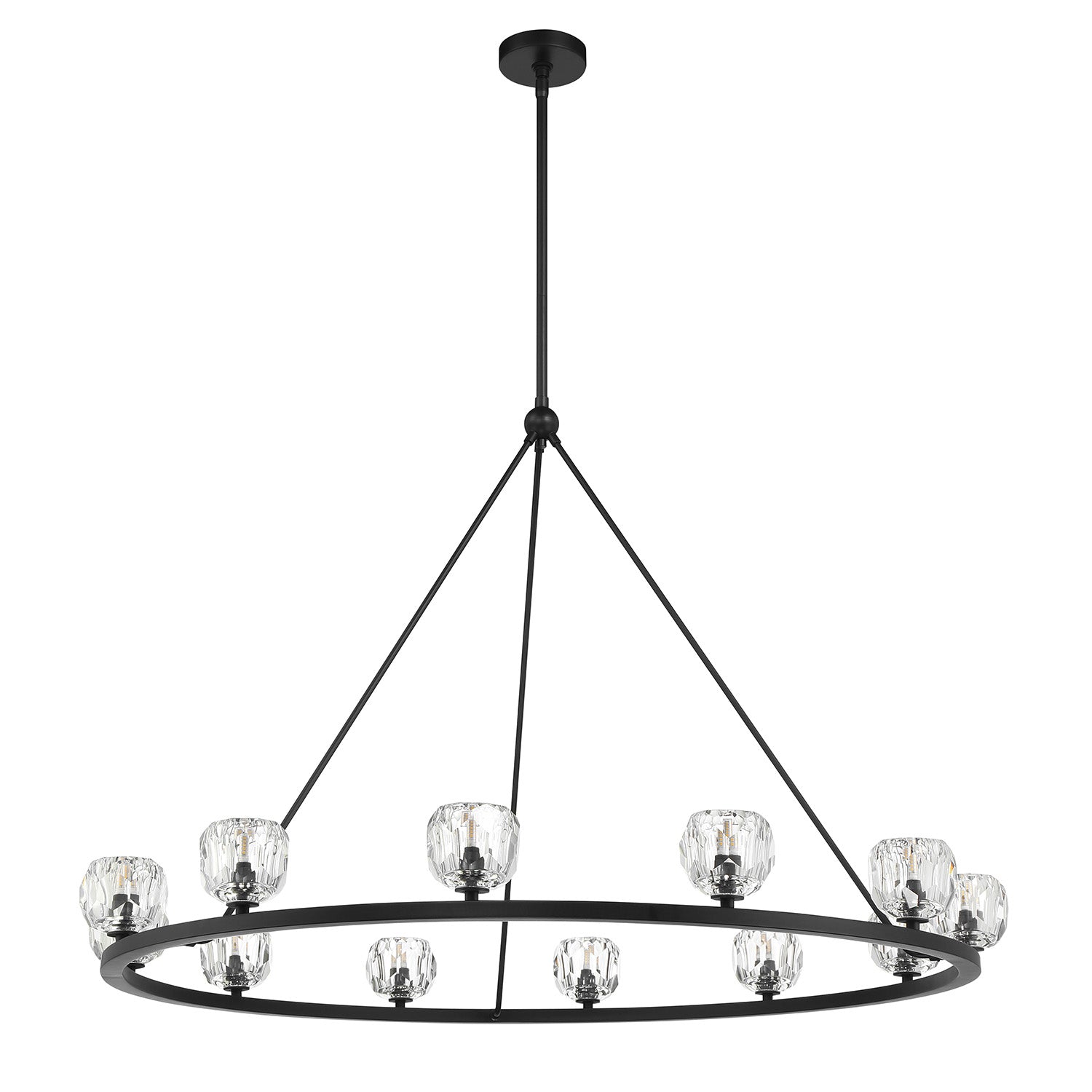 Silas 12 Light Ring Chandelier 48", Matte Black and Faceted Crystal