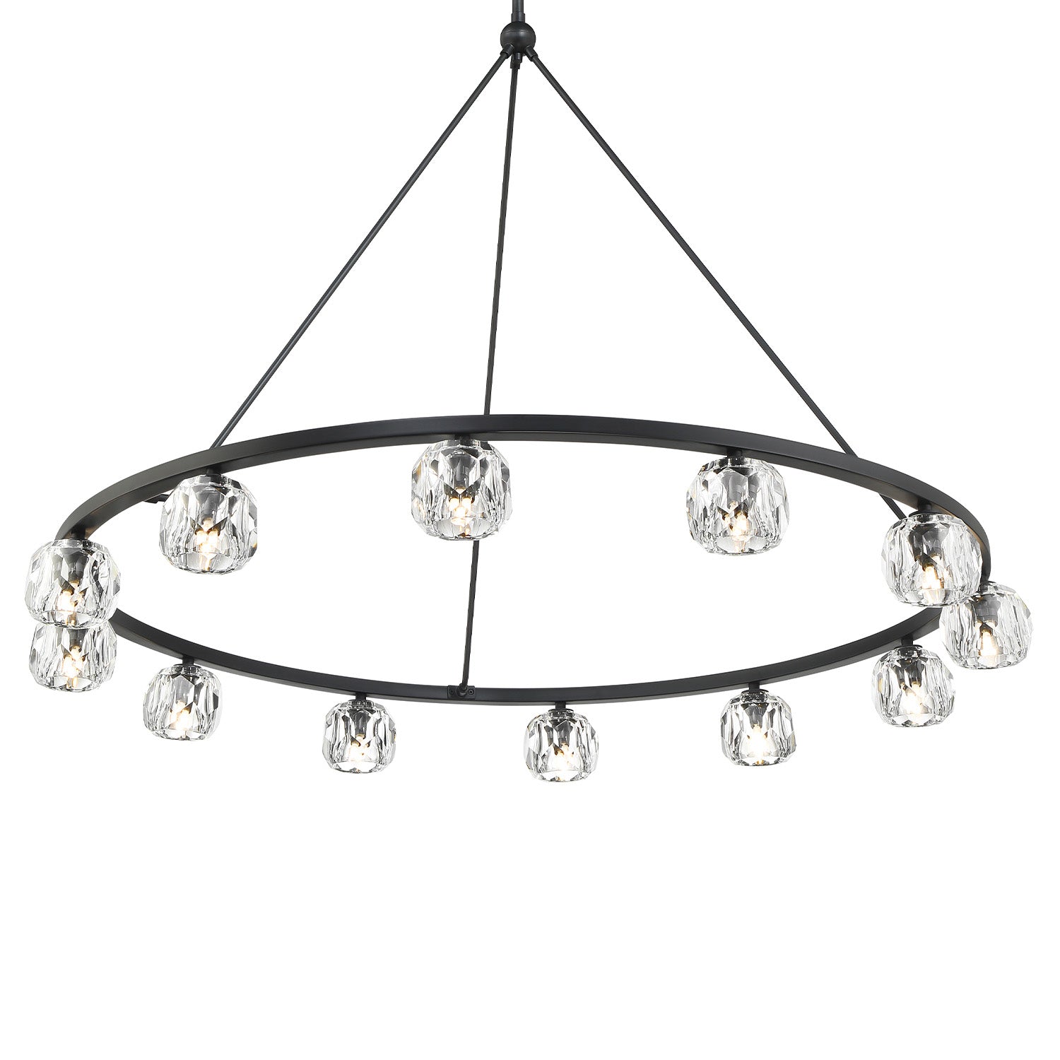 • Silas features a single-tiered round metal frame paired with 12 hand-cut faceted crystal globes for a refined and industrial look