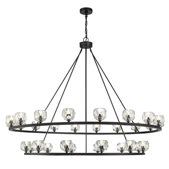 Silas 30 Light Two-Tier Ring Chandelier 60", Matte Black and Faceted Crystal