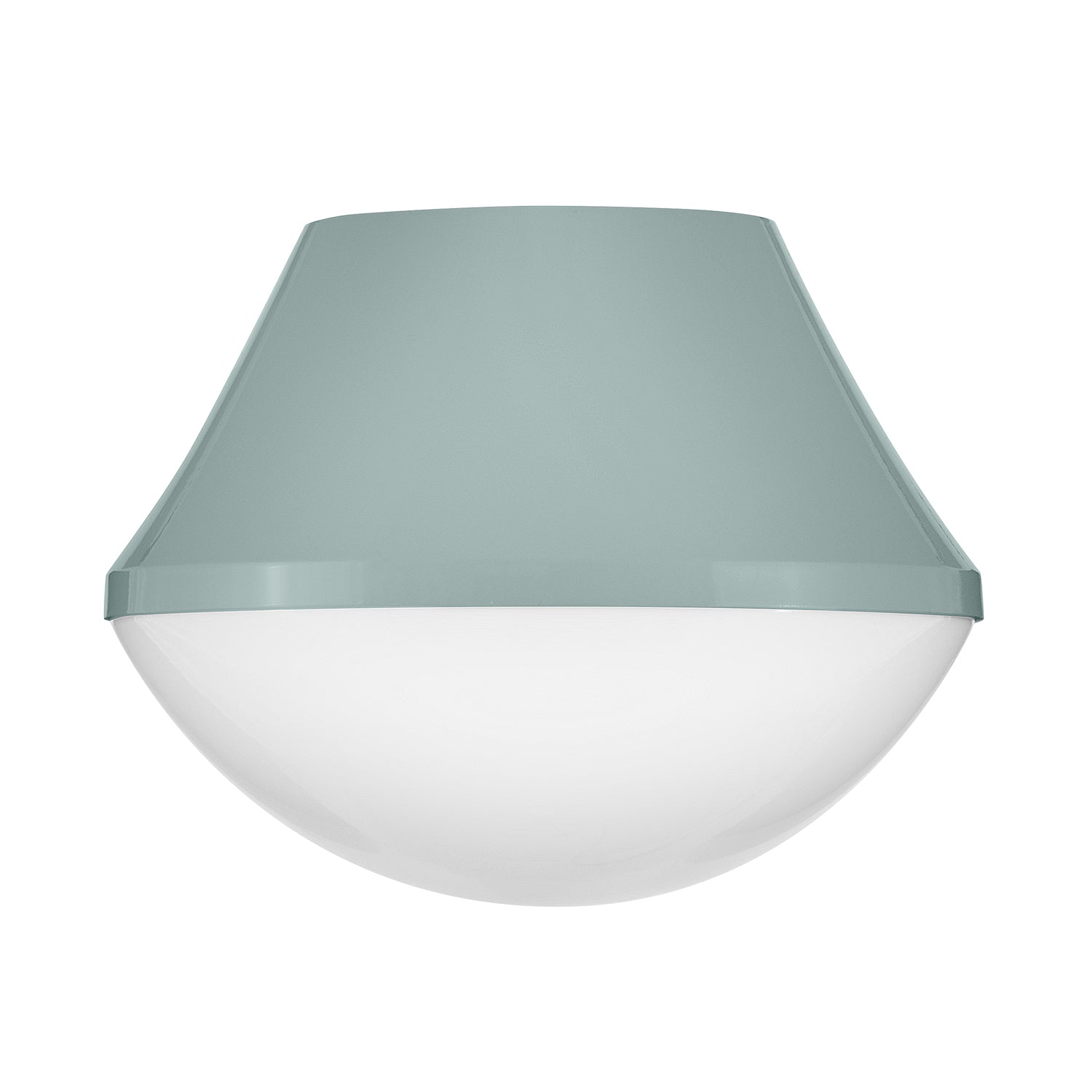 • Modern flush mount ceiling light with a unique silhouette, aquaverde finish, and opal glass diffuser