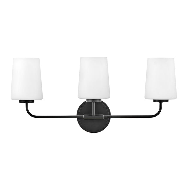Wyatt 3 Light Vanity, Black with Milk Glass