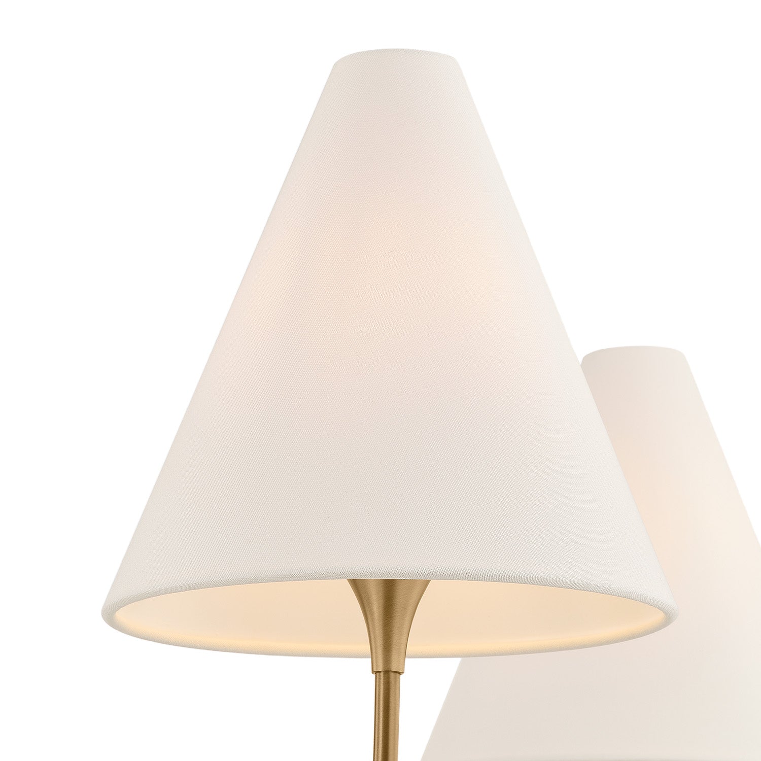 • Finished in a warm Patina Brass that beautifully complements the off-white fabric shades