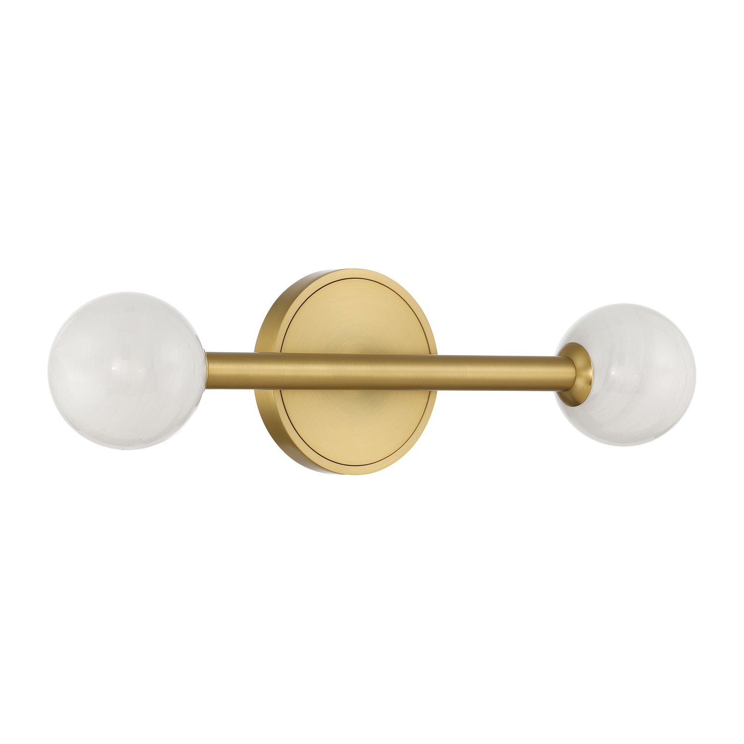 The Ashton 2 Light Wall Sconce features a sleek, modern design with clean lines that enhance light diffusion. This collection combines form and function, offering a versatile lighting solution with a refined, minimalist structure that integrates effortlessly into both contemporary and transitional spaces. Crafted with premium strié glass globes and a lustrous Brass frame, the fixture delivers a warm, sophisticated glow while creating both texture and warmth. Designed with a low profile for ADA compliance, it is an ideal choice for hallways, entryways, or flanking a vanity. With its UL damp rating, the Ashton sconce provides both enduring style and functional brilliance for modern living.