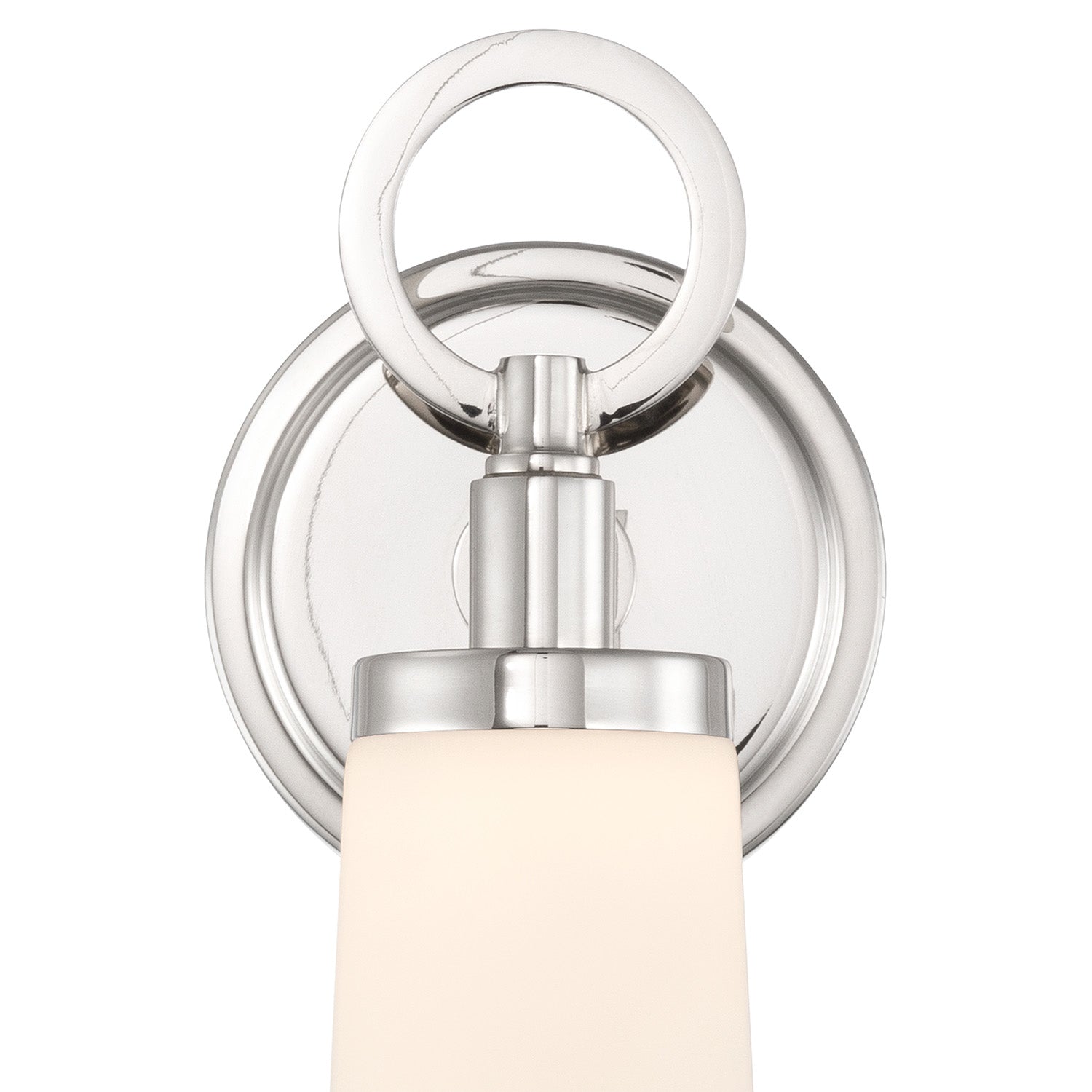 • Modern deco wall sconce featuring a premium opal glass shade and metal ring detailing