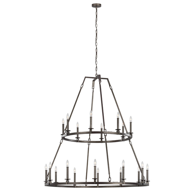 Bernard Two-Tier Ring Chandelier 48", Aged Steel