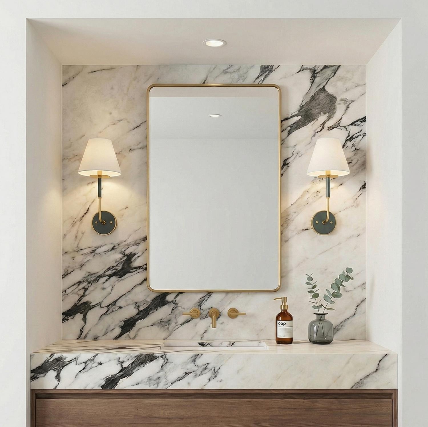 The Cicero Wall Sconce 17" evokes a sense of timeless charm through its refined framework and soft, tailored shades. This single-light fixture features a classic shape with gently curved metalwork and mixed finishes that create a sophisticated, curated aesthetic. The Aged Brass frame is further enhanced by Forest Green details, providing a rich tonal contrast that highlights the artisanal quality of the design. Perfectly balanced and elegant, this sconce brings a warm, inviting glow to hallways, bedrooms, or living spaces.