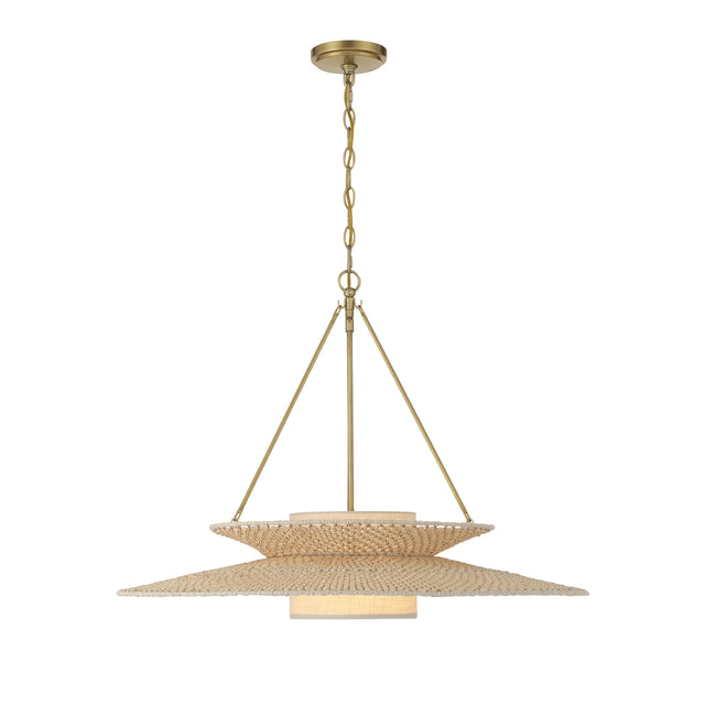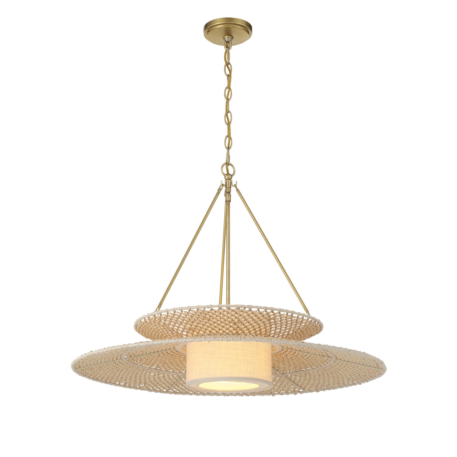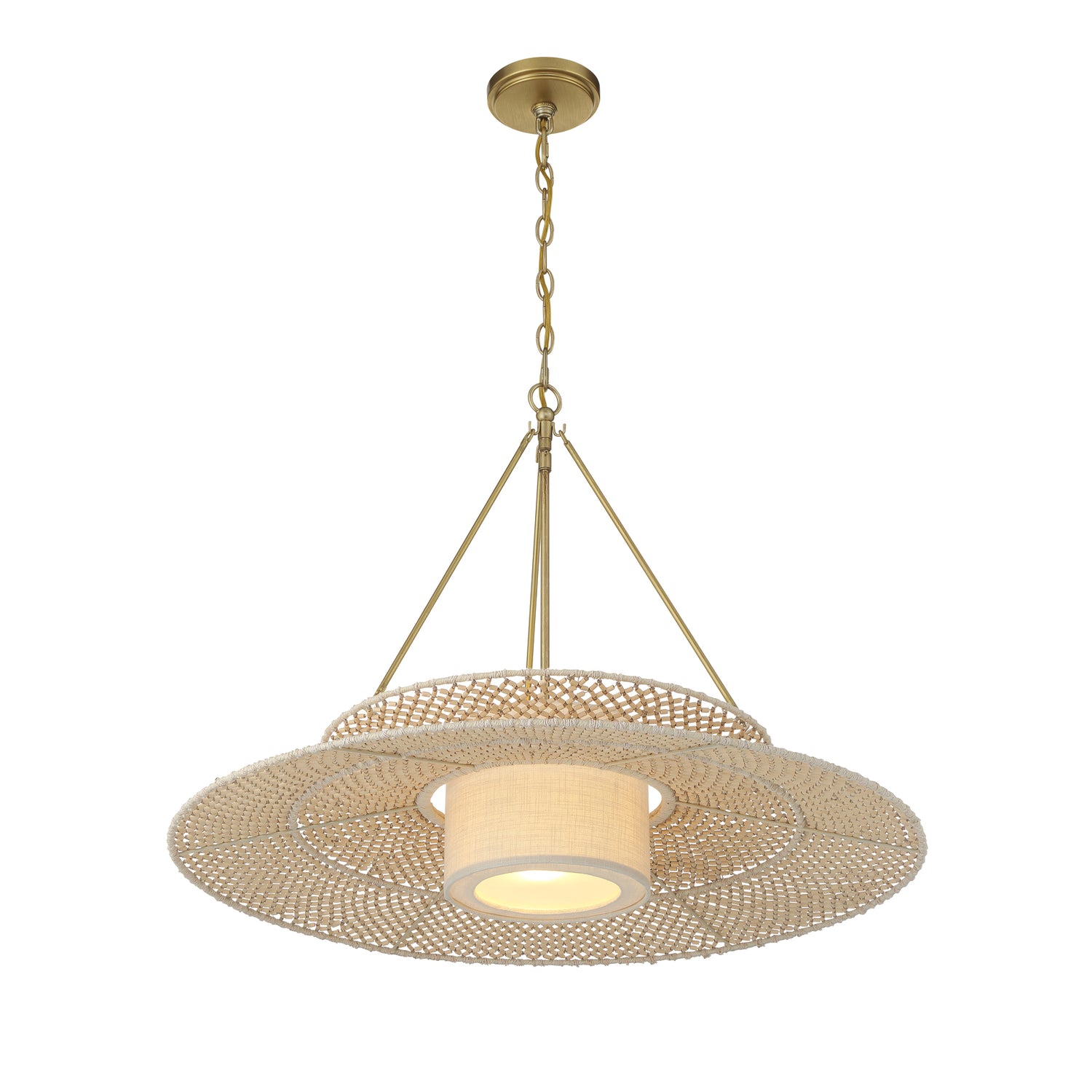 The Gemma Chandelier 29" combines artisanal detail with natural refinement, making a sophisticated statement in any room. Hand-strung beads create an airy sense of texture, while a fabric shade softly diffuses the light. The result is a modern fixture that feels both organic and elevated, perfect for layered, contemporary interiors. With its generous 29.5" width, this fixture provides a soft, warm glow that enhances entryways, dining areas, or living spaces. The Soft Brass finish complements the natural materials, delivering enduring style and a perfect blend of modern craftsmanship and organic charm.