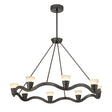 • Josie LED Chandelier features a sculptural, wave-like steel frame finished in rich Old Bronze, with eight real Alabaster stone shades
