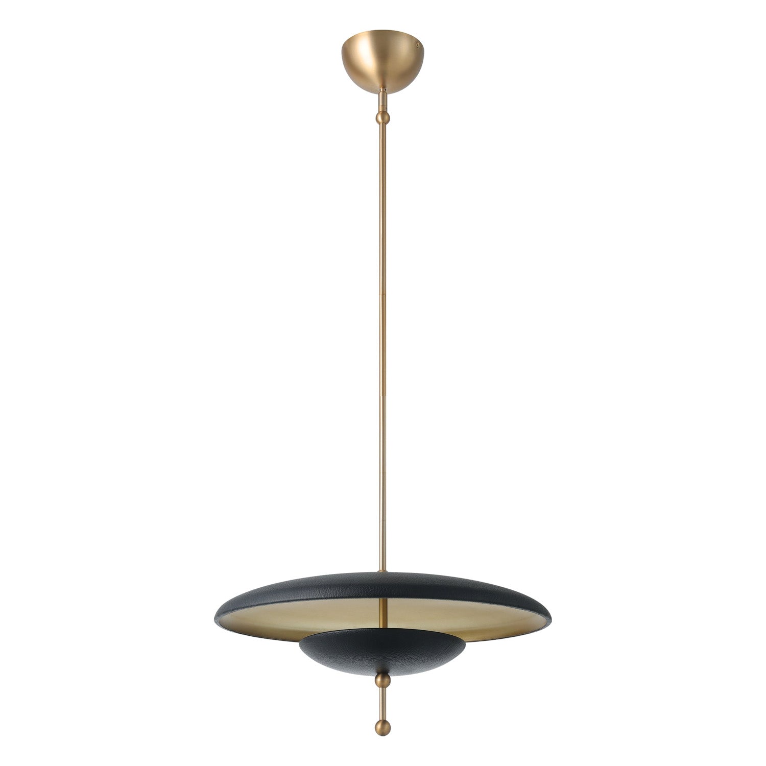 Lloyd Large LED Pendant 20", Black Leather and Satin Brass