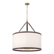 • Stylish, transitional drum-shaped pendant featuring a fabric shade and refined vegan leather trim