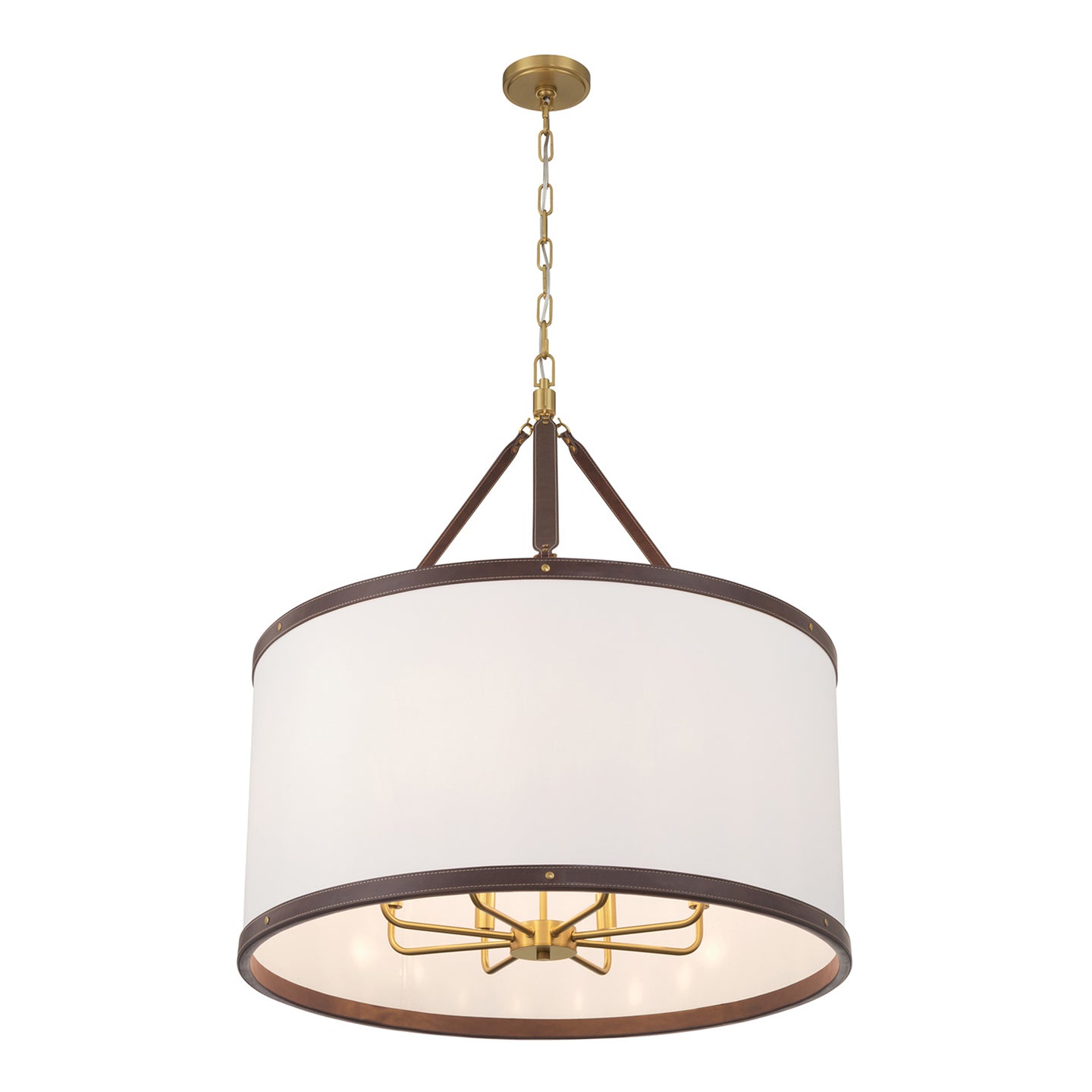 Spencer Pendant 28", Brass with Brown Leather Accents