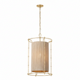 The Valerie Pendant 20" is a luxury statement light that makes a sophisticated impression with its organic, natural texture and large-scale design. The fixture is defined by a wide, elegant cylindrical drum shade meticulously crafted with natural rope, creating a soft, warm, multi-directional glow. This woven shade pendant is thoughtfully scaled to be an impressive centerpiece over a grand dining table or two-story entryway, injecting a refined, bohemian style. With its UL damp rating, it offers both visual interest and practical functionality. The Vintage Gold Leaf finish enhances the fixture's natural material, delivering enduring style and a perfect blend of elegance and simplicity.